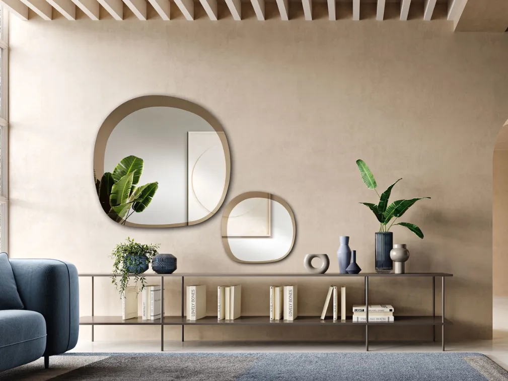 Nel nostro punto vendita potrai visionare in prima persona la qualità dei modelli di specchi design senza cornice del brand, proprio come questa soluzione in foto. Le composizioni arredative di grande valore estetico del marchio Capodarte personalizzano gli interni con i loro colori e stile, ricreando particolari atmosfere arredative. Complementi e specchi personalizzano l'arredo di casa, riempiendo lo spazio in maniera utile e rendendolo accogliente e bello da vedere. Specchio Fill formato da due specchi sovrapposti di Capodarte senza cornice: conferirà personalità e charme a un locale arredato con mobili e oggetti accessori dai richiami design. Assai versatili e plurifunzionali, i Complementi design senza cornice svolgono funzioni disparate: ultimano le qualità pratiche e il valore estetico dell'ambiente.
