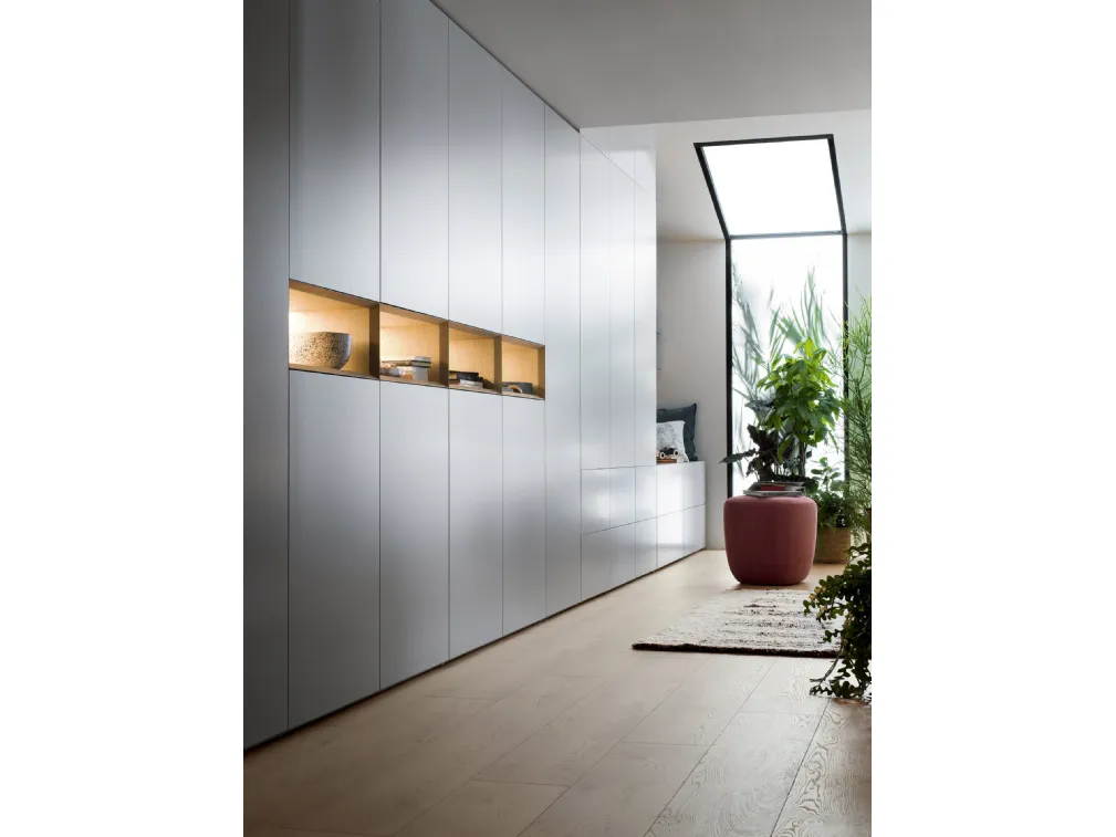 Contattaci e scopri di più sulla nostra linea di Arredamento Casa: potrai completare la zona del riposo potendo usufruire di una diversificata varietà di contenitori moderni, come l'armadio in laccato opaco nella fotografia. Per allestire al meglio una stanza pratica e sofisticata, opta per le più esclusive soluzioni dei migliori produttori, letti, armadi e comò di alto contenuto estetico. Armadio Alfa con Nicchia di Novamobili: compila il form per ricevere info di ogni sorta e consigli per allestire la camera che hai sempre desiderato. Gli Armadi a muro con ante battenti sono componenti immancabili nella zona notte, per renderla ammobiliata al meglio, pratica e completa di tutto.