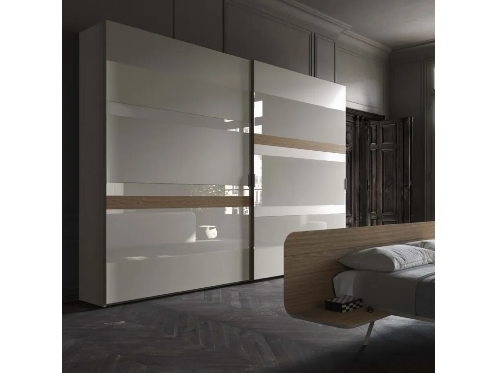 Ti presentiamo l'armadio Elite Vetro fasce Legno in laccato opaco di Voltan! Un ricco catalogo di armadi a muro con ante scorrevoli.