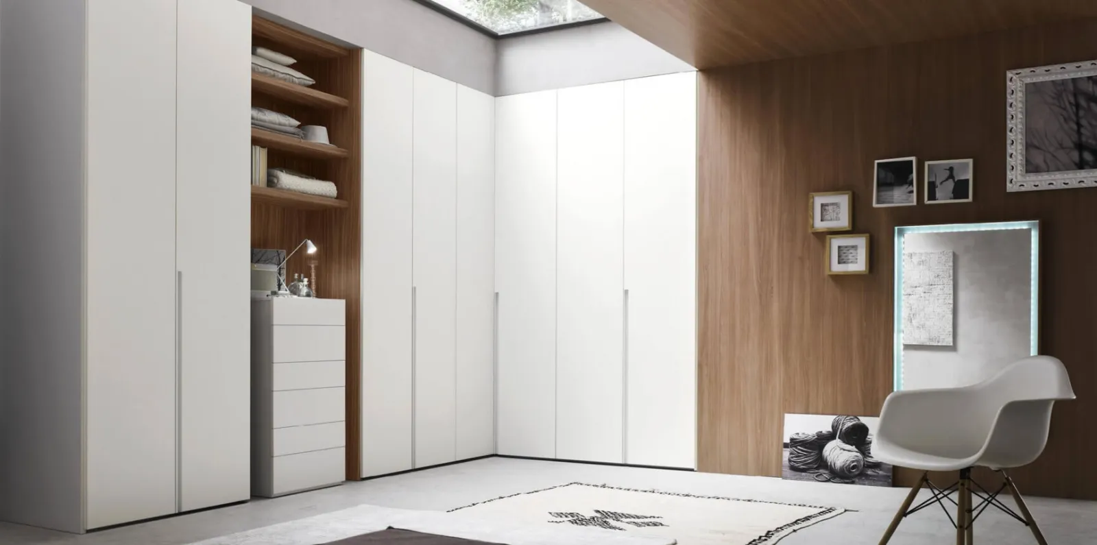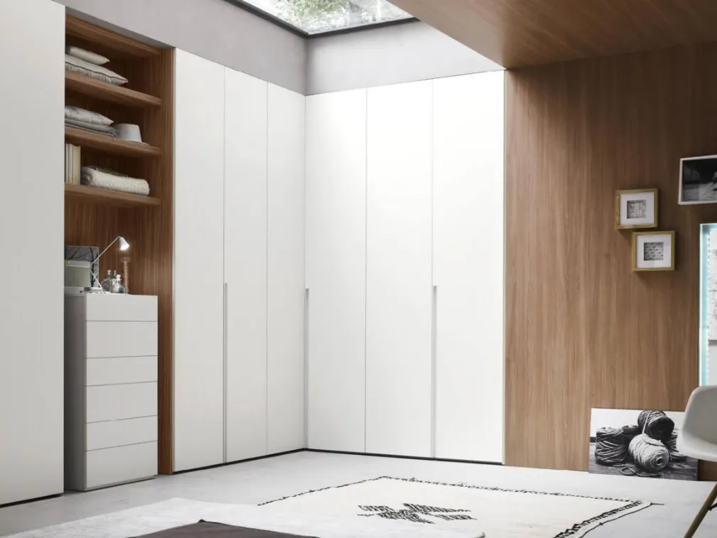 Nella nostra linea di Armadi ad angolo moderni con ante battenti troverai anche il modello presente in foto, pensato per chi cerca funzionalità e stile.