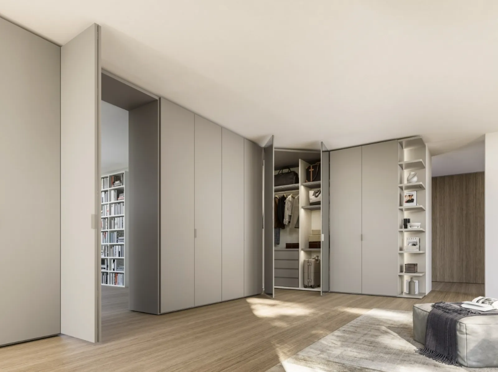 Qualità e comfort sono gli ingredienti che, di pari passo con una buona resa estetica, connotano tutti gli Armadi ad angolo moderni della marca Sangiacomo. Se vuoi creare una stanza bella e funzionale, compila il form o facci visita per ottenere infromazioni, tante idee per la casa nell'ambito dell'Arredamento Casa. Una diversificata disponibilità di arredi in laccato opaco come quest'armadiatura con ante battenti nell'immagine. Farci visita significa visionare in prima persona le offerte del noto e rinomato brand, sempre di grande design. Armadio Terminale Angolare Anta Liscia di Sangiacomo in laccato opaco: in un ricco catalogo di mobili e complementi, questo modello ti permetterà di completare la tua zona notte come l'avevi sognata.