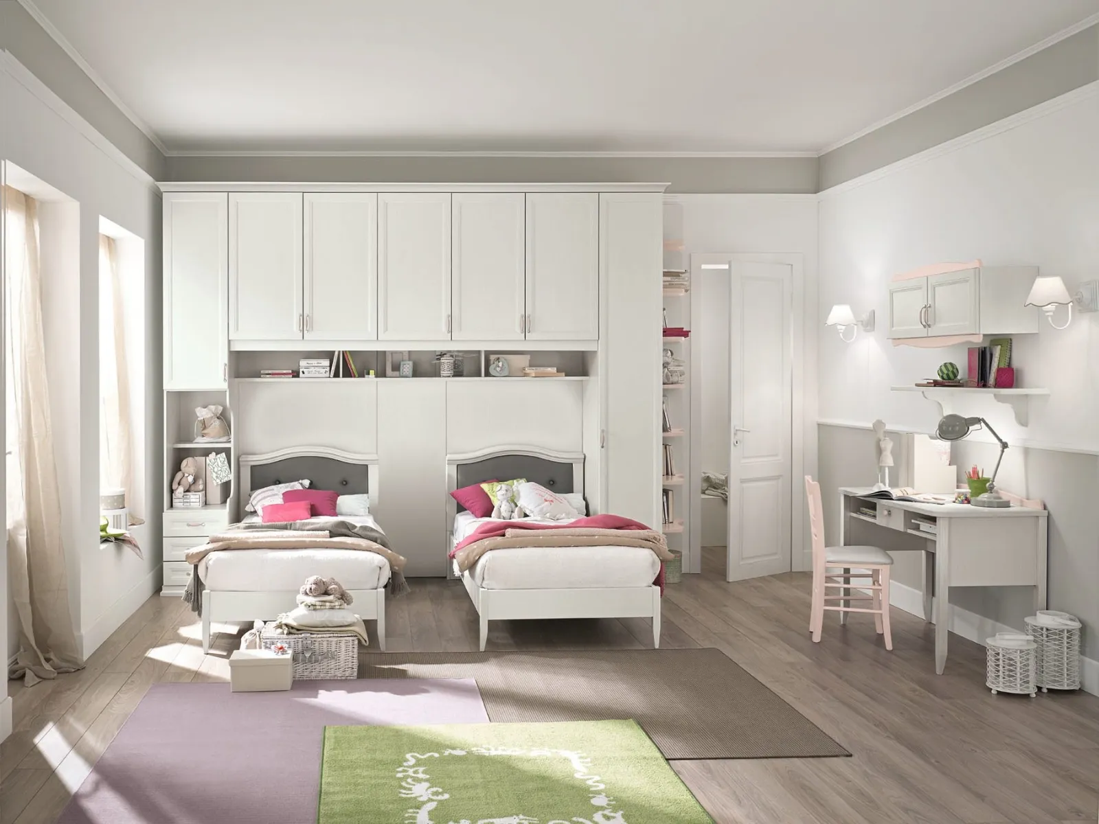 Arreda stanzette classiche con le Camerette a ponte Colombini Casa! Il modello Arcadia AC034 in melaminico è per ragazzi.