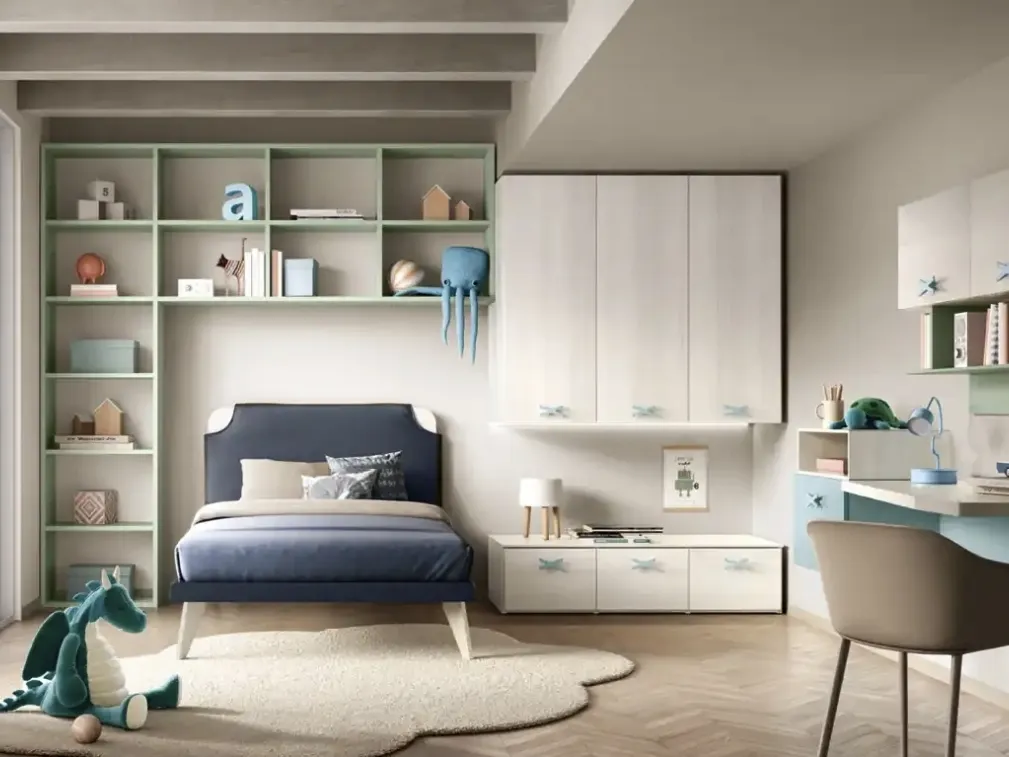 Se cerchi spunti progettuali per decorare al meglio la stanza dei tuoi bambini, ti presentiamo la Cameretta K102 di Moretti Compact Camerette con finitura in melaminico. Nella progettazione della stanza dei piccoli affidati a noi: nel nostro punto vendita presentiamo tutte le più originali composizioni arredative moderne per la loro camera. Moretti Compact Camerette propone un ricco catalogo di accessori da abbinare su misura: troverai letto, armadio, tavolo da lavoro, sedie e librerie. Porta design e cromie vivaci nella stanza dedicata ai più piccoli con questa proposta, una delle Camerette a ponte per bambini di Moretti Compact Camerette.
