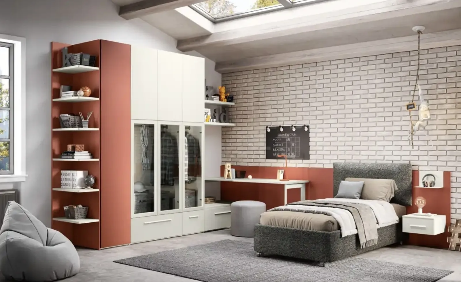 Con questa cameretta K108 Moretti Compact Camerette, tra le soluzioni su misura, potrai progettare stanze moderne per ragazzi.