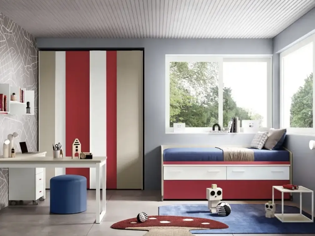 Arreda stanzette moderne con le Camerette componibili Moretti Compact Camerette! Il modello K110 in laccato opaco è per bambini.
