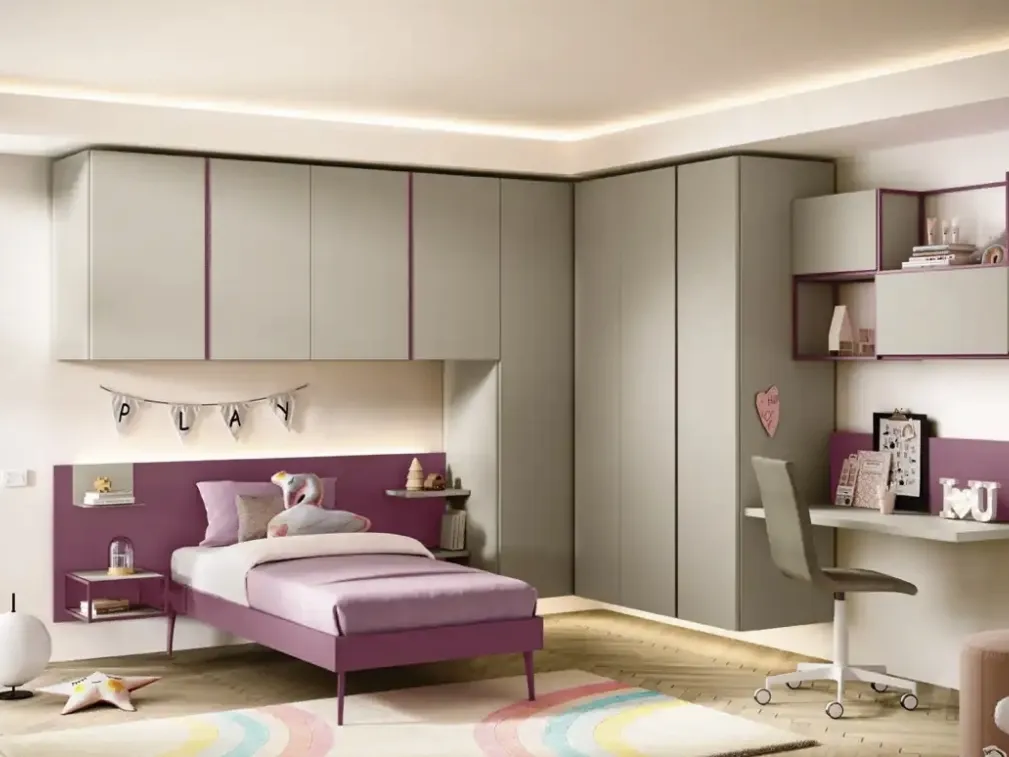 Con questa cameretta K116 Moretti Compact Camerette, tra le soluzioni a ponte, potrai arredare stanze moderne per bambine.