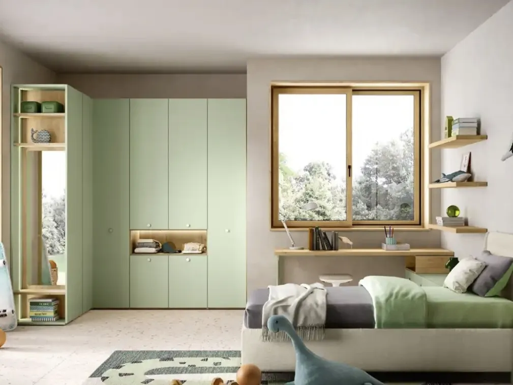 Moretti Compact Camerette dispone di un ricco catalogo di elementi accessori da abbinare su misura: troverai letto, guardaroba, scrivania, sedie e librerie. Se cerchi spunti progettuali per organizzare alla perfezione la stanza dei tuoi figli, ti proponiamo la Cameretta K117 di Moretti Compact Camerette con finitura in laccato opaco. Questa soluzione in laccato opaco ultima alla perfezione le qualità pratiche e l'estetica della camaretta, poiché è capace di coniugare funzionalità ed ergonomia. Porta contenuto estetico e cromie vivaci nella stanza dedicata ai bambini con questa proposta, una delle Camerette componibili per bambini di Moretti Compact Camerette.