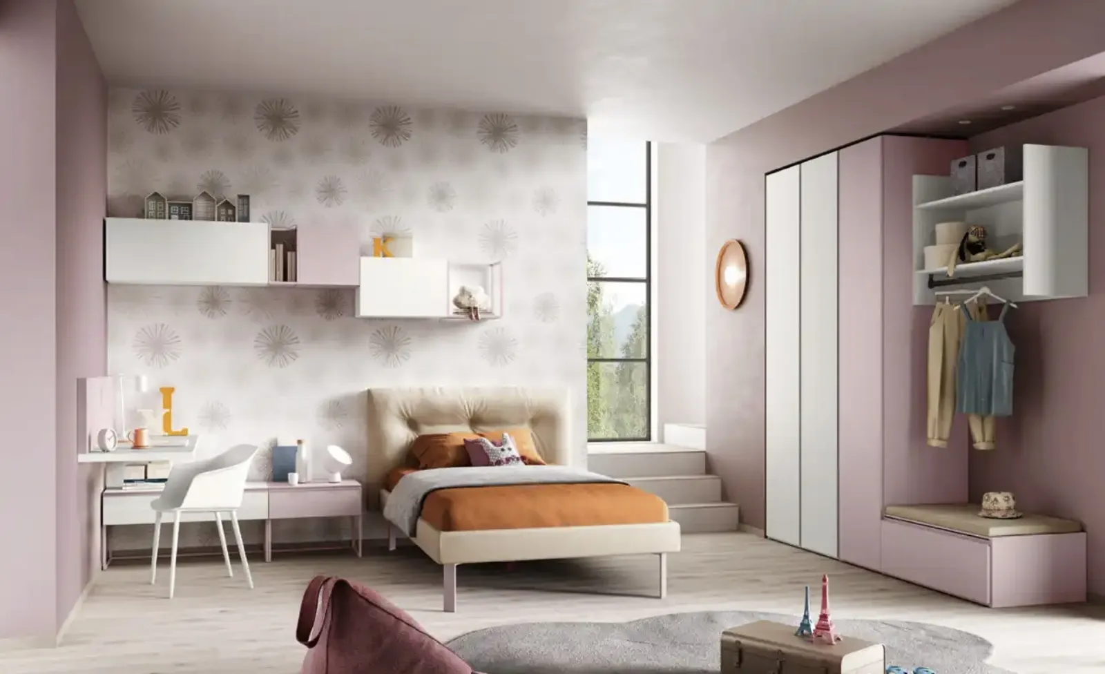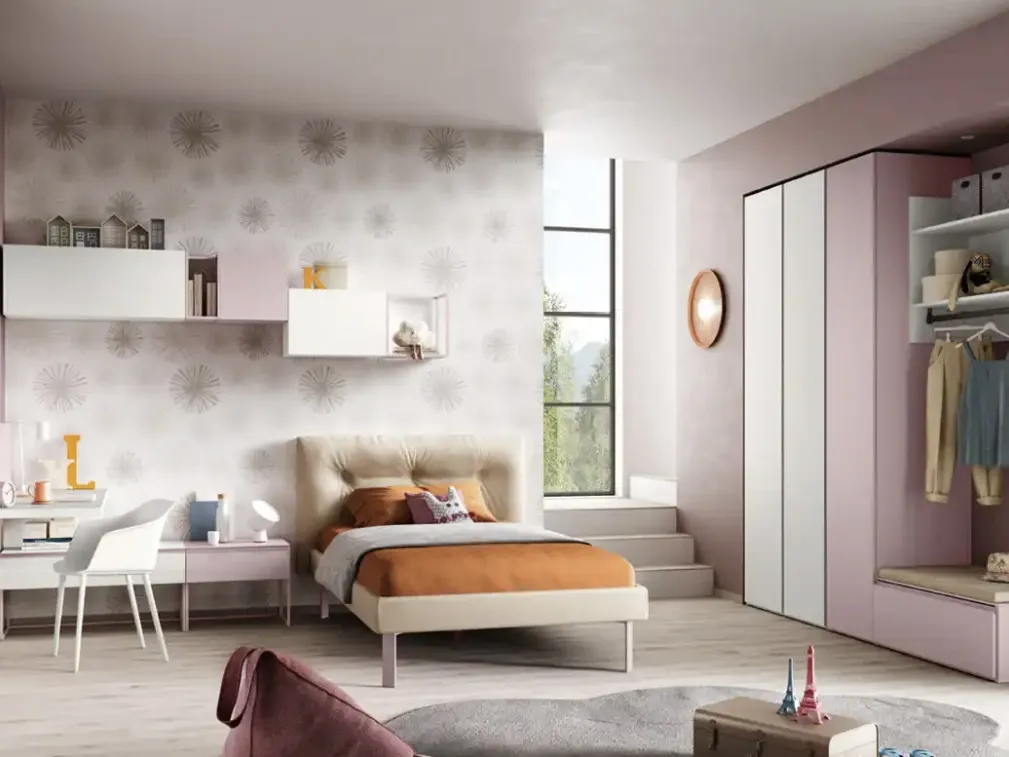 Con questa cameretta K121 Moretti Compact Camerette, tra le soluzioni componibili, potrai progettare stanze moderne per bambine.