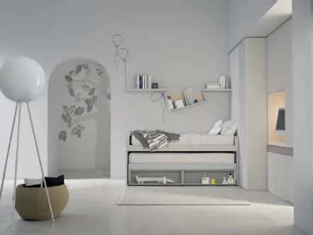 Arreda stanzette moderne con le Camerette a soppalco Moretti Compact! Il modello M2201 in laccato opaco è per bambine.