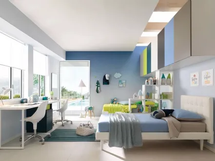 Arreda stanzette moderne con le Camerette componibili Moretti Compact! Il modello MC036 in laccato opaco è per ragazzi.
