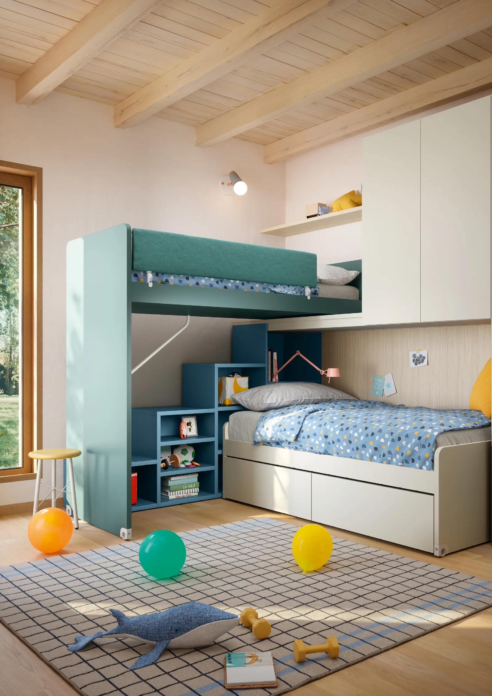 Clicca e scopri di più sulla cameretta per bambini Soppalco Scorrevole Slide! Le Camerette a soppalco Nidi ti aspettano.
