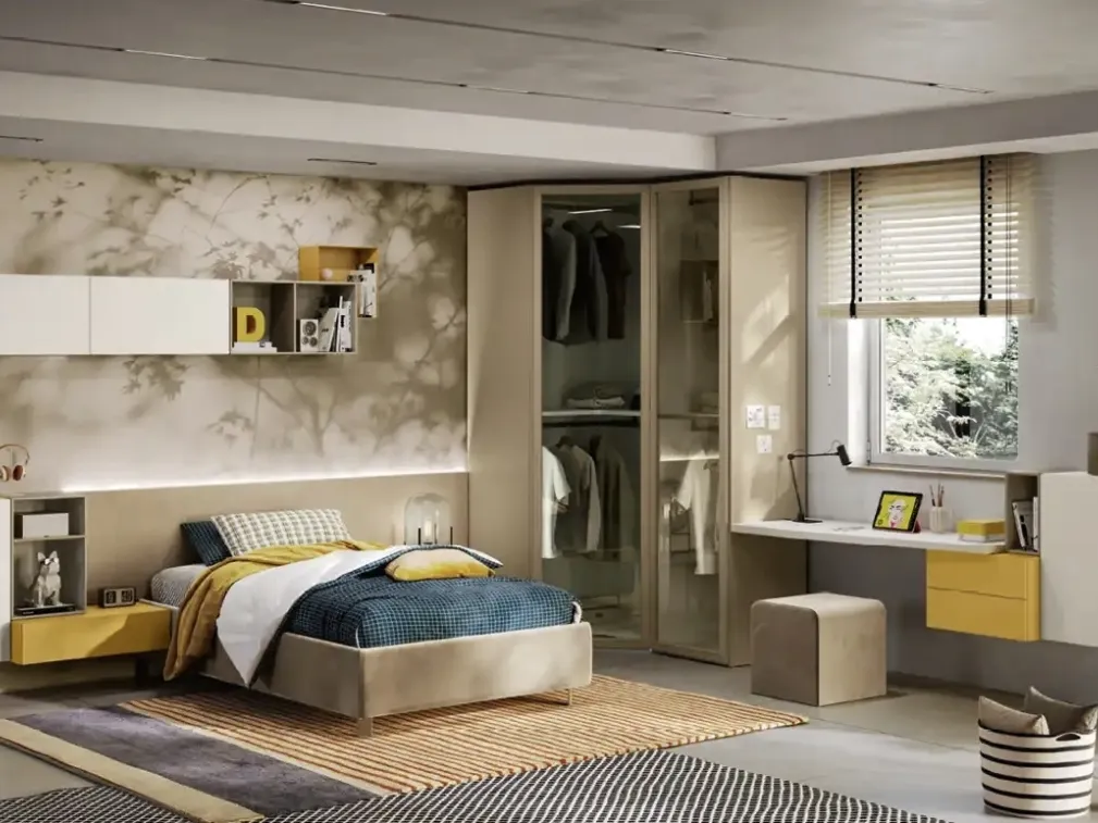 Con questa cameretta Y102 Moretti Compact Camerette, tra le soluzioni componibili, potrai arredare stanze moderne per ragazzi.