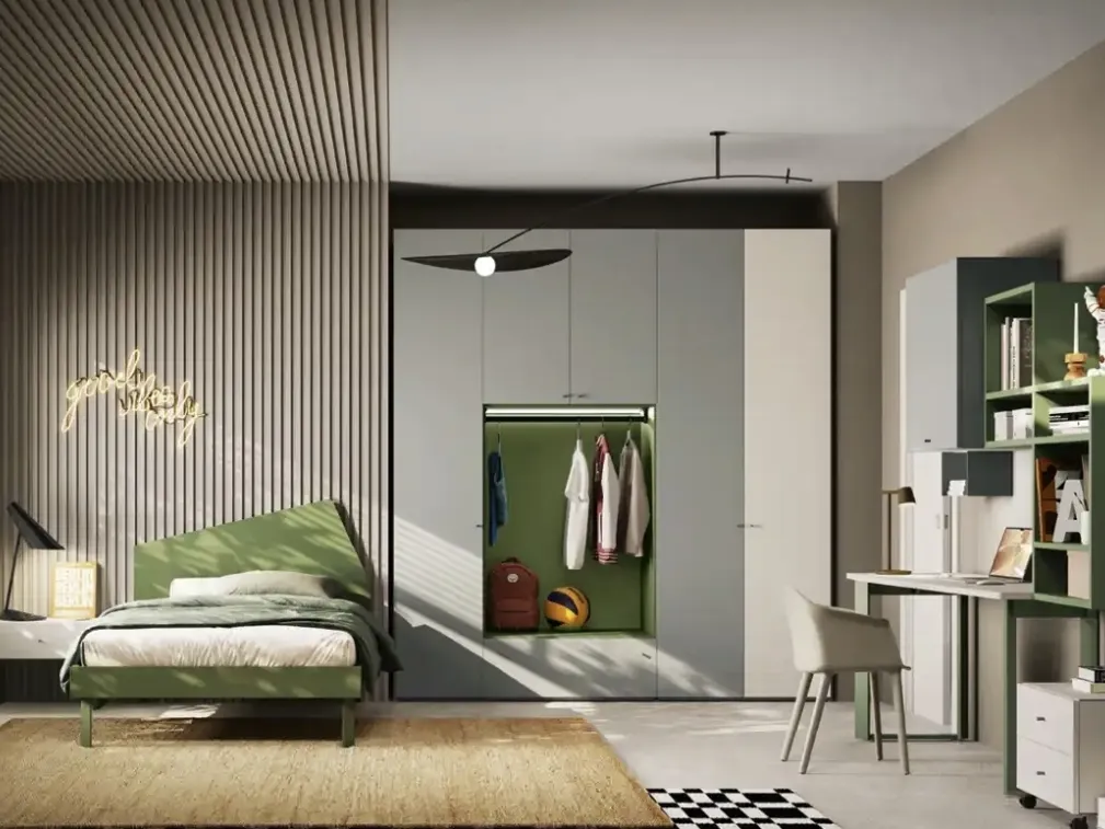 Arreda stanzette moderne con le Camerette componibili Moretti Compact Camerette! Il modello Y106 in laccato opaco è per ragazzi.