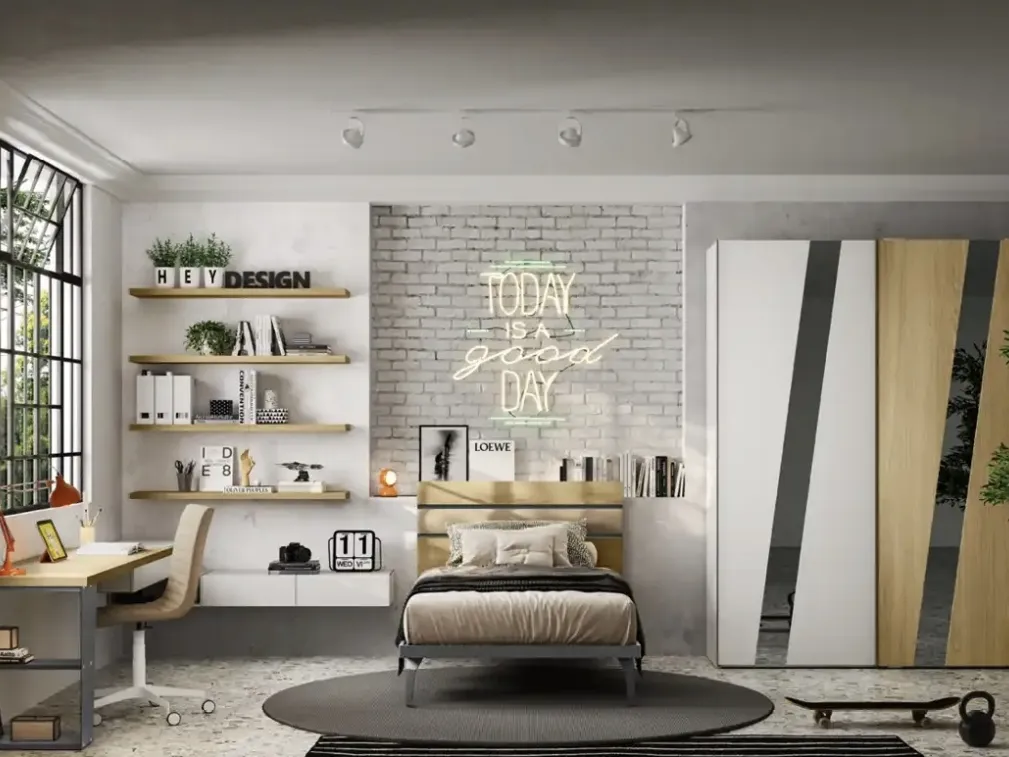 Arreda stanzette moderne con le Camerette componibili Moretti Compact Camerette! Il modello Y119 in melaminico è per ragazzi.