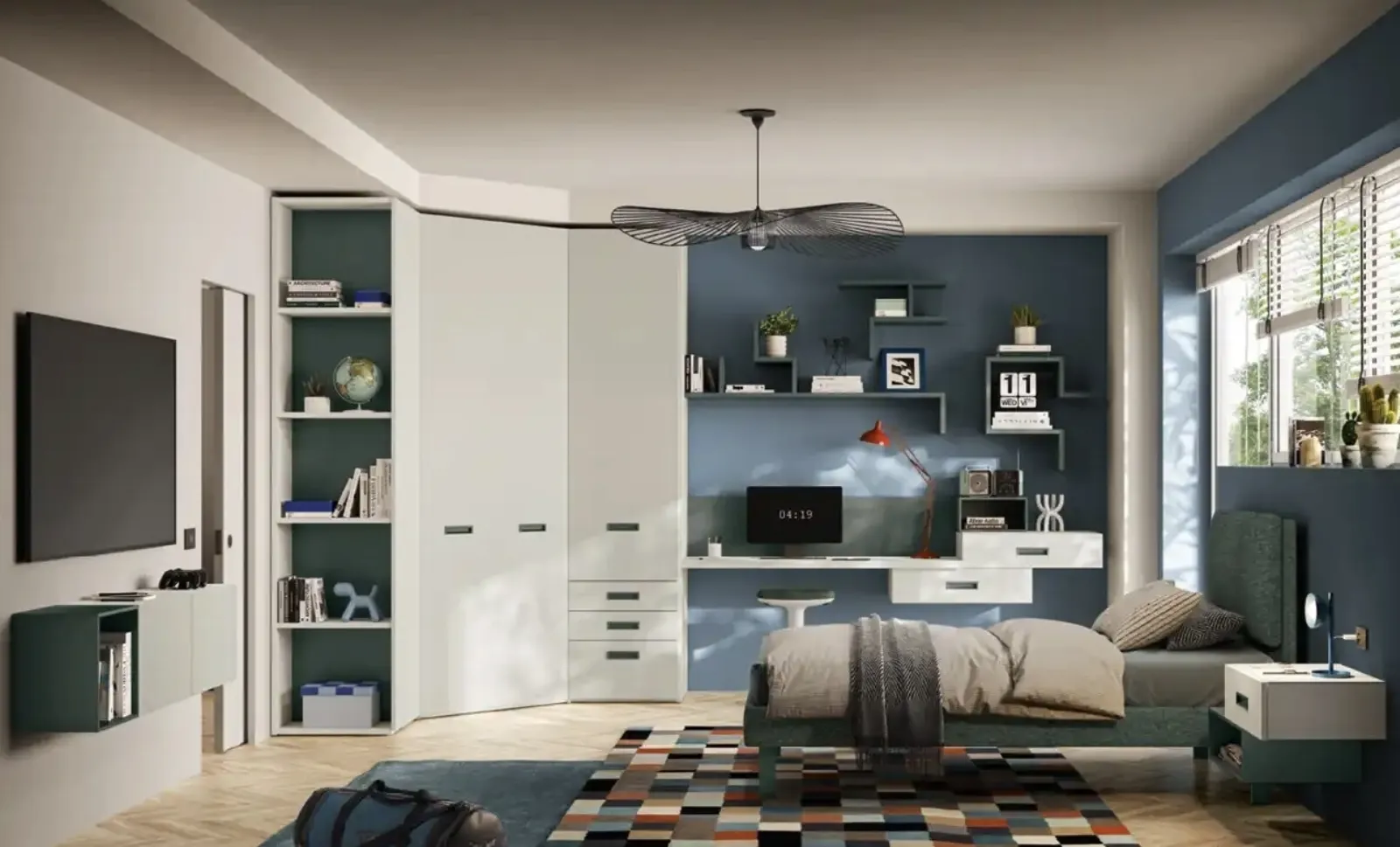 Porta estetica e tonalità vivaci nella stanza dedicata ai bambini con questa proposta, una delle Camerette componibili per ragazzi di Moretti Compact Camerette. Questa soluzione in melaminico ultima alla perfezione le qualità pratiche e il valore estetico della camaretta, poiché è capace di coniugare funzionalità ed ergonomia. Nell'arredo della stanza dei bambini affidati a noi: nel nostro punto vendita presentiamo tutte le più belle composizioni moderne per la loro camera. Moretti Compact Camerette mette a disposizione un ricco catalogo di accessori da accostare su misura: troverai letto, armadio o cabina armadio, scrivania, sedie e librerie.
