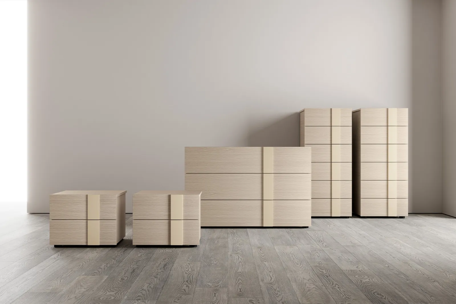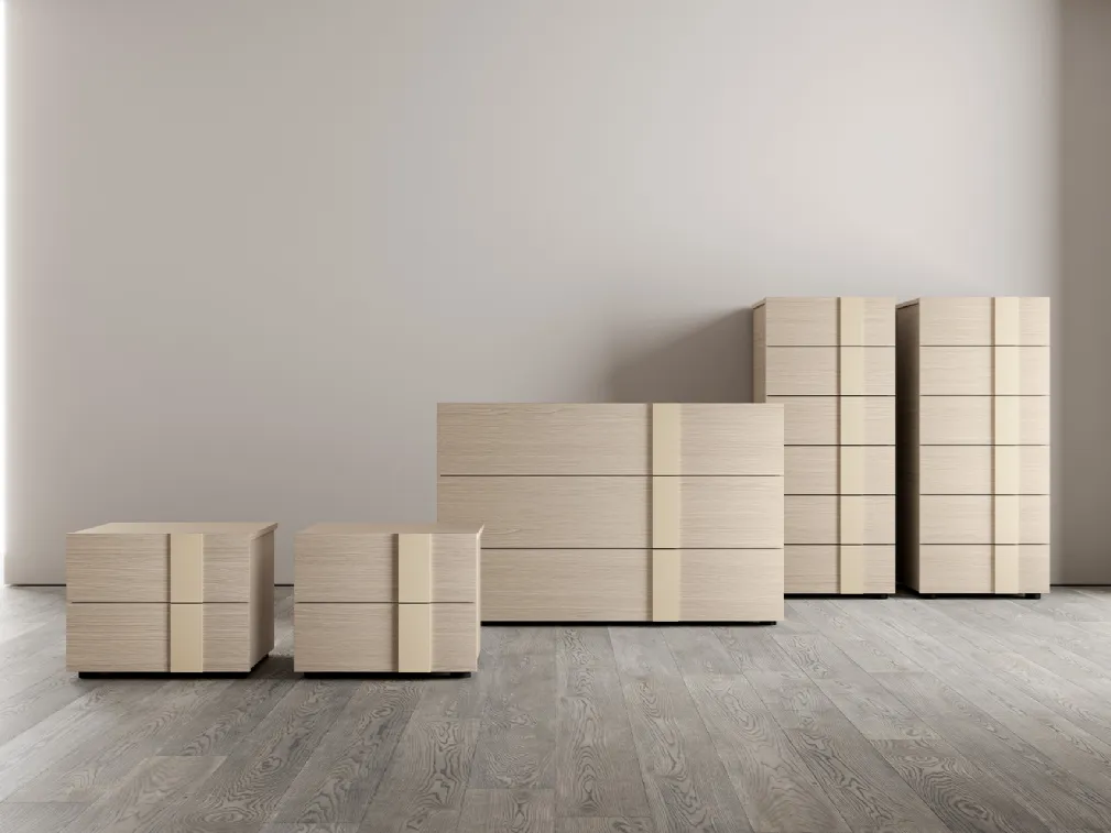 Vuoi progettare la zona notte con Comodini e mobili con cassetti di SantaLucia? Ecco qui il modello Alfy Gruppo Notte in melaminico per spazi moderni.
