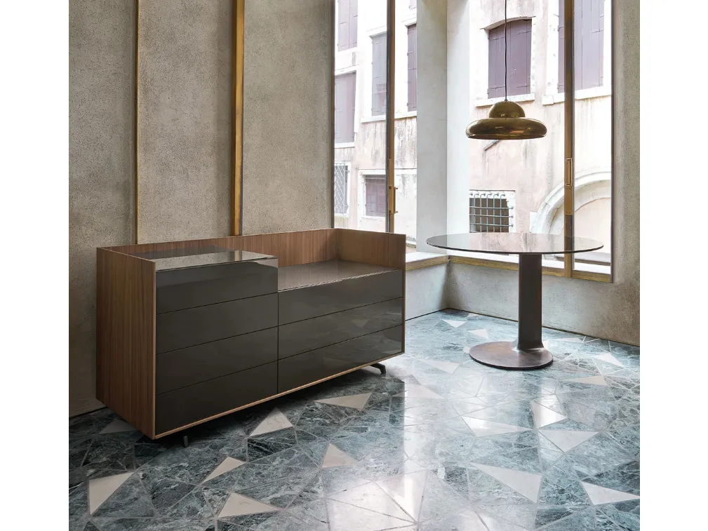 Vuoi arredare la camera da letto con Comodini e mobili con cassetti di Sangiacomo? Ti presentiamo il modello Cabaret Glass Comò in laccato lucido per spazi design.