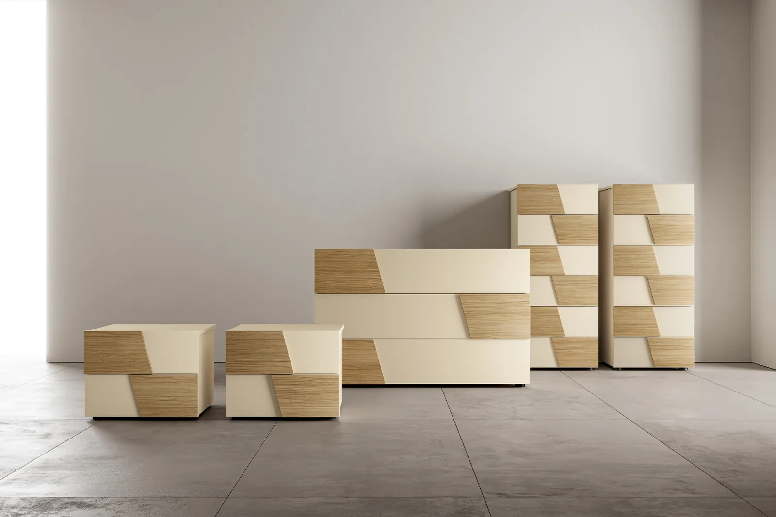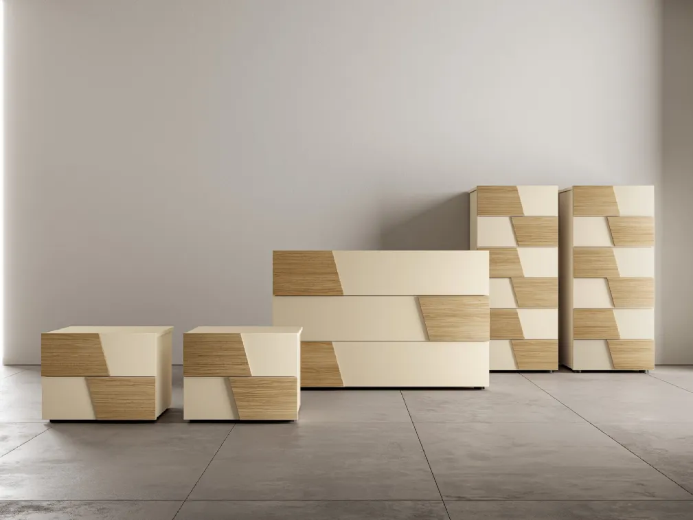 Una ricca gamma di cassettiere SantaLucia: i comodini moderni in melaminico, come Club Gruppo Notte, sono tra le proposte più originali.