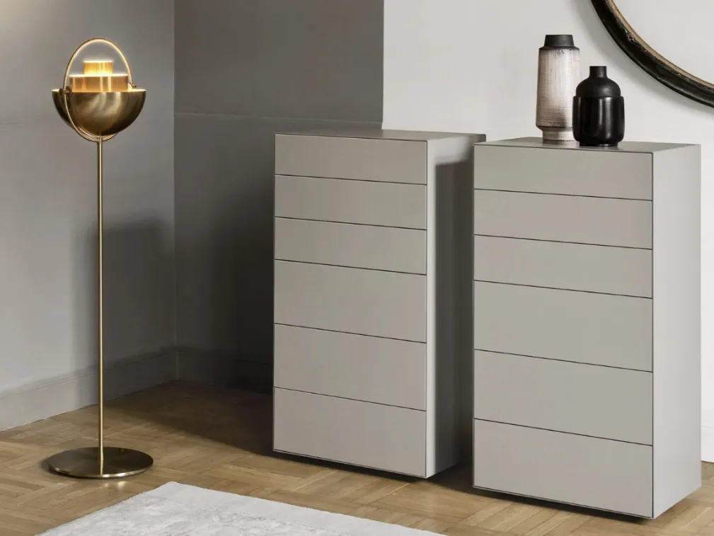 Una ricca gamma di mobili con cassetti Sangiacomo: i comodini moderni in laccato opaco, come Domino Mono Cassettiera, sono tra le proposte più belle.