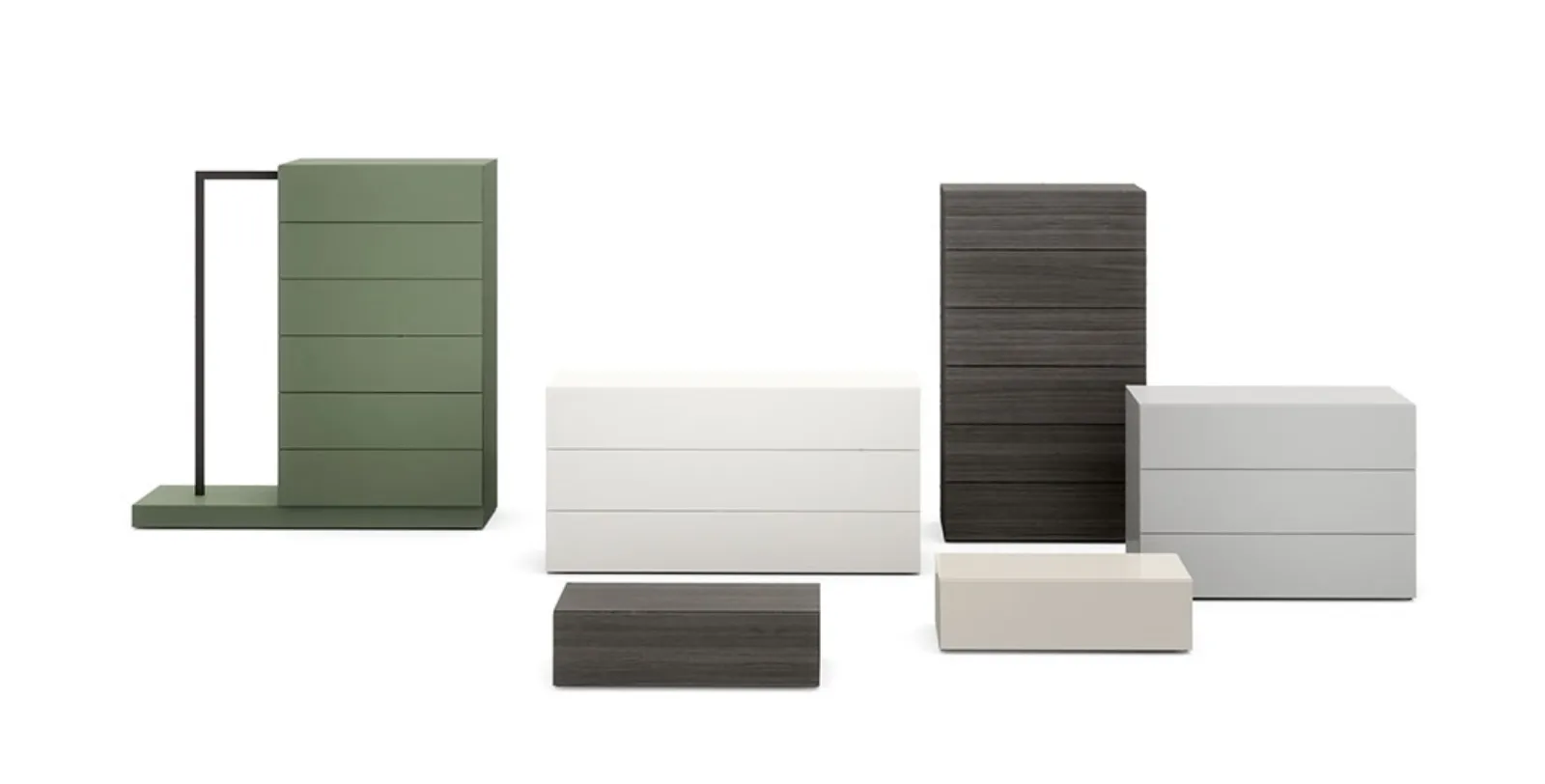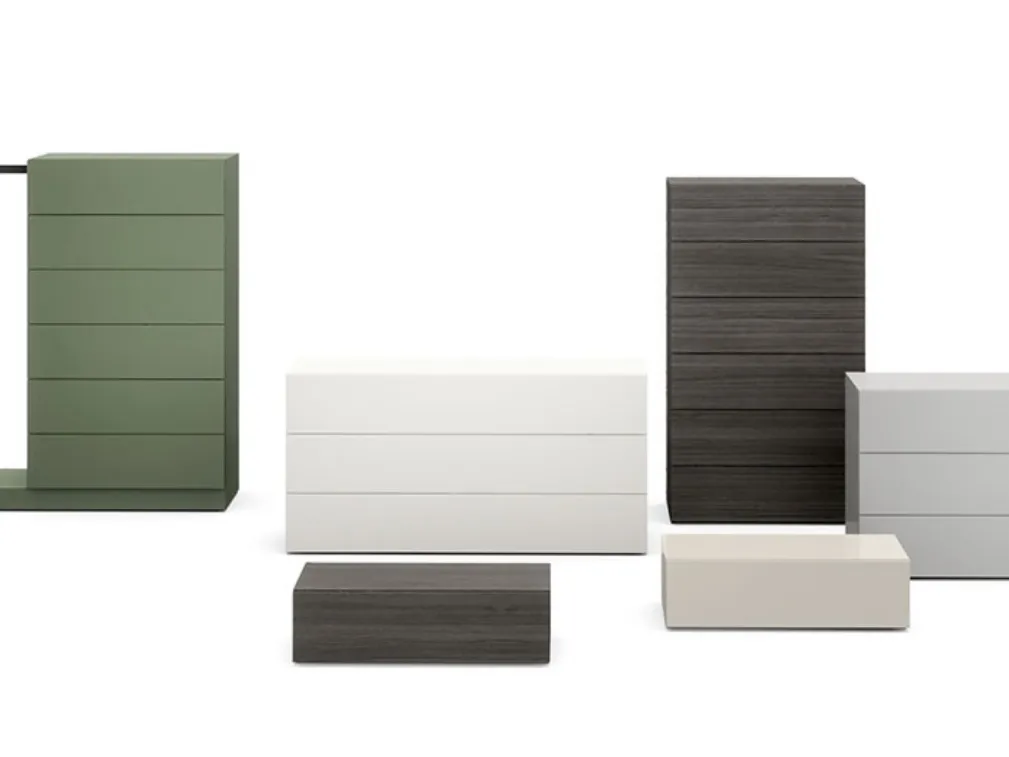 Vuoi progettare la zona notte con Comodini e cassettiere di Novamobili? Ecco qui il modello Easy System Gruppo Notte in laccato opaco per spazi moderni.