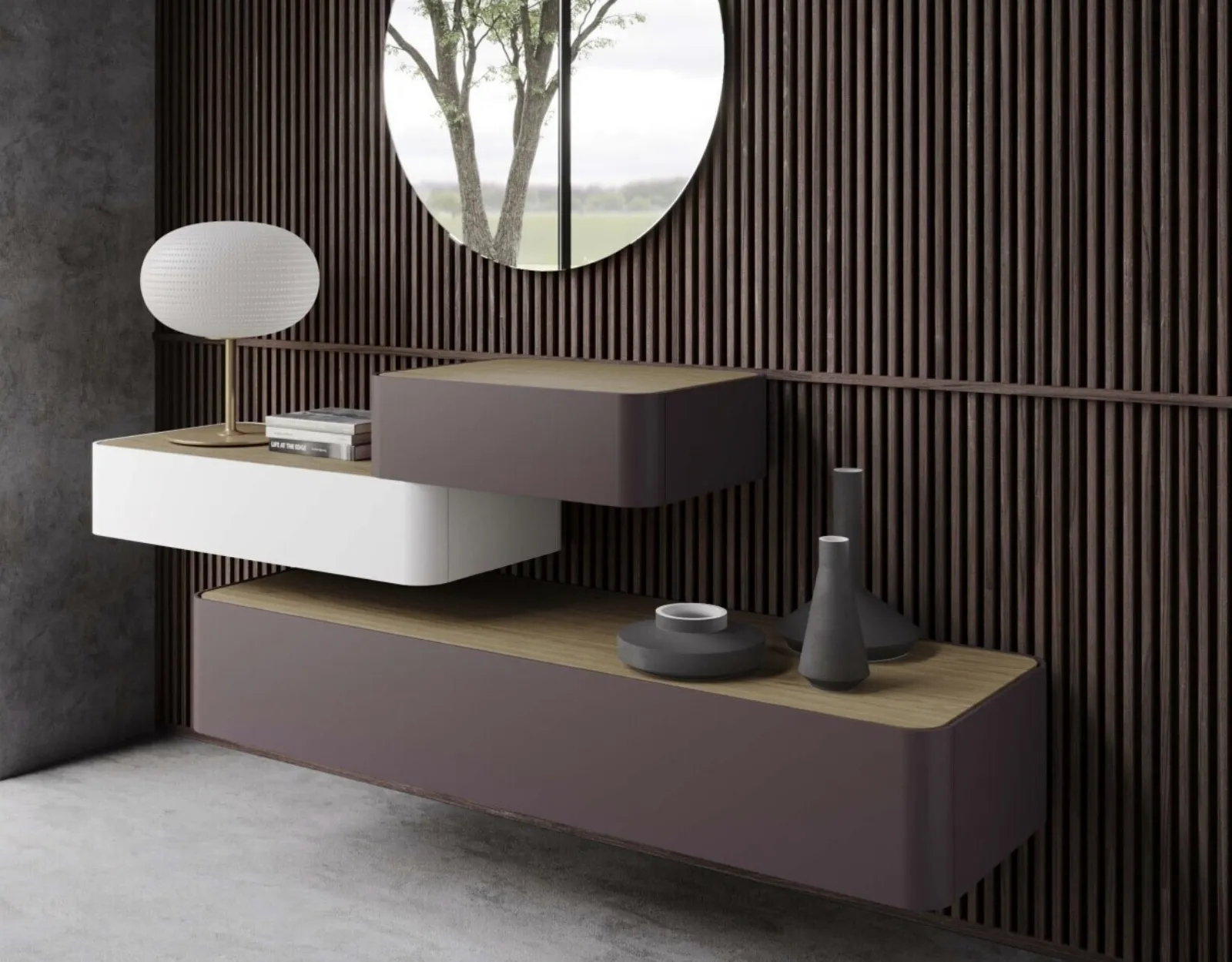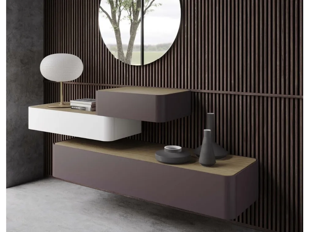 Una ricca gamma di mobili con cassetti Voltan: i comodini design in laccato opaco, come Elite Comò sospeso, sono tra le soluzioni più originali.