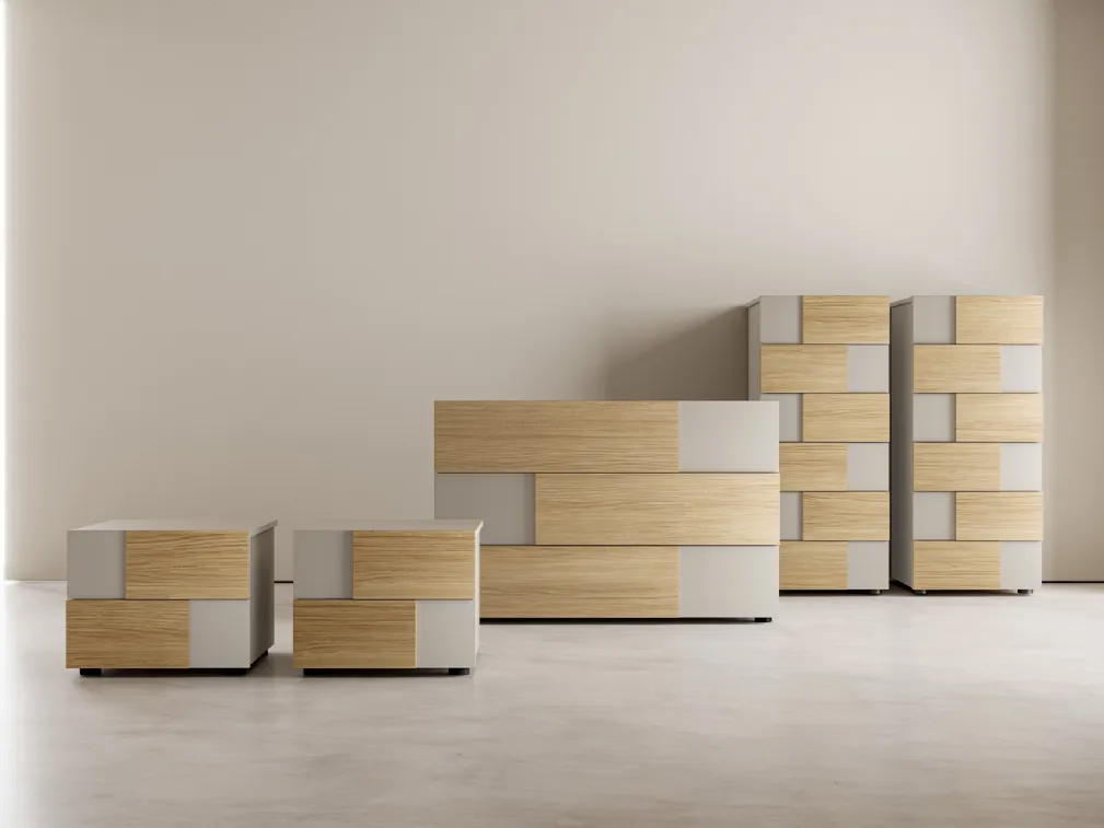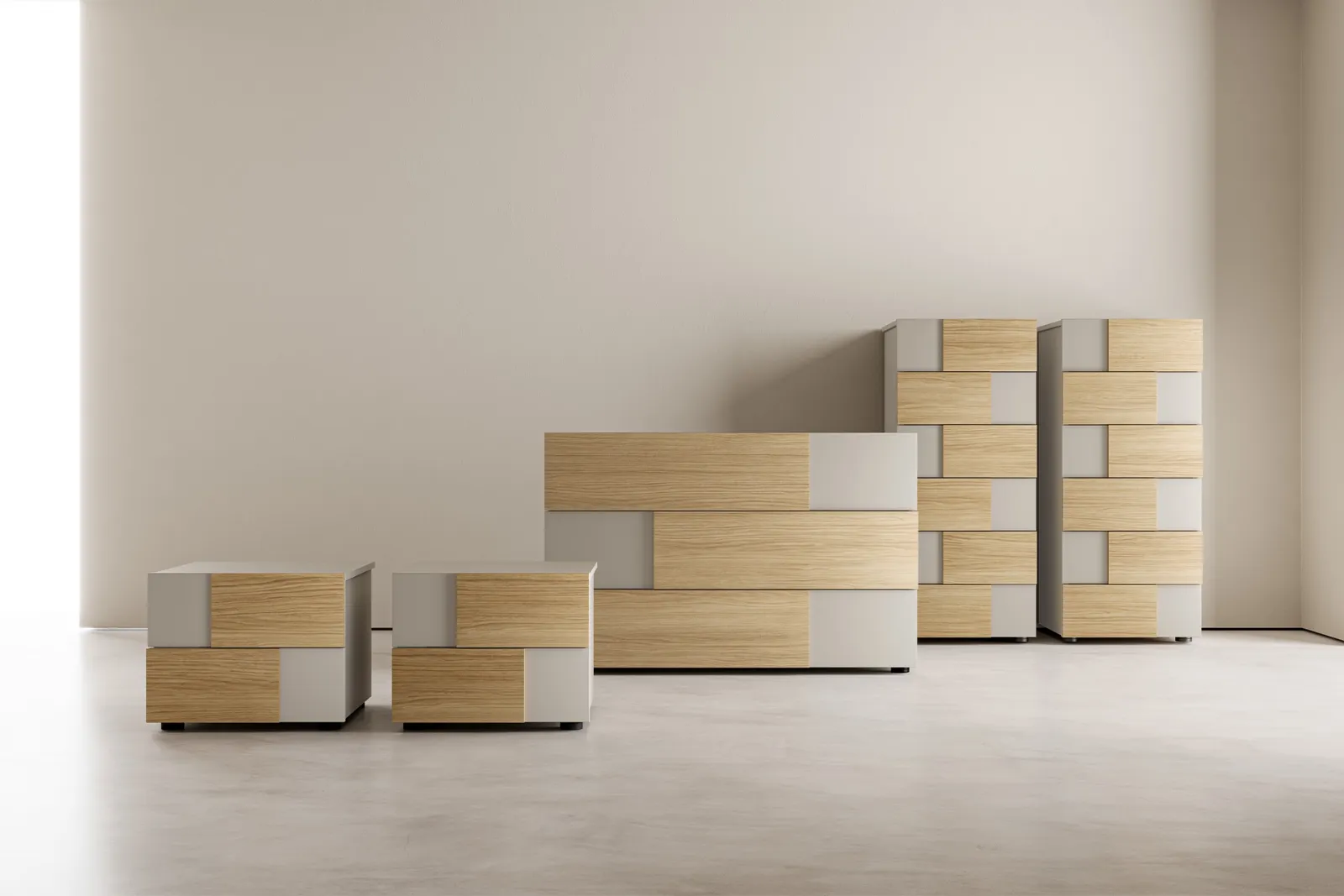 Scopri Comodini moderni e mobili con cassetti SantaLucia! Il modello Game Mix Gruppo Notte costruito in melaminico è la soluzione ottimale.