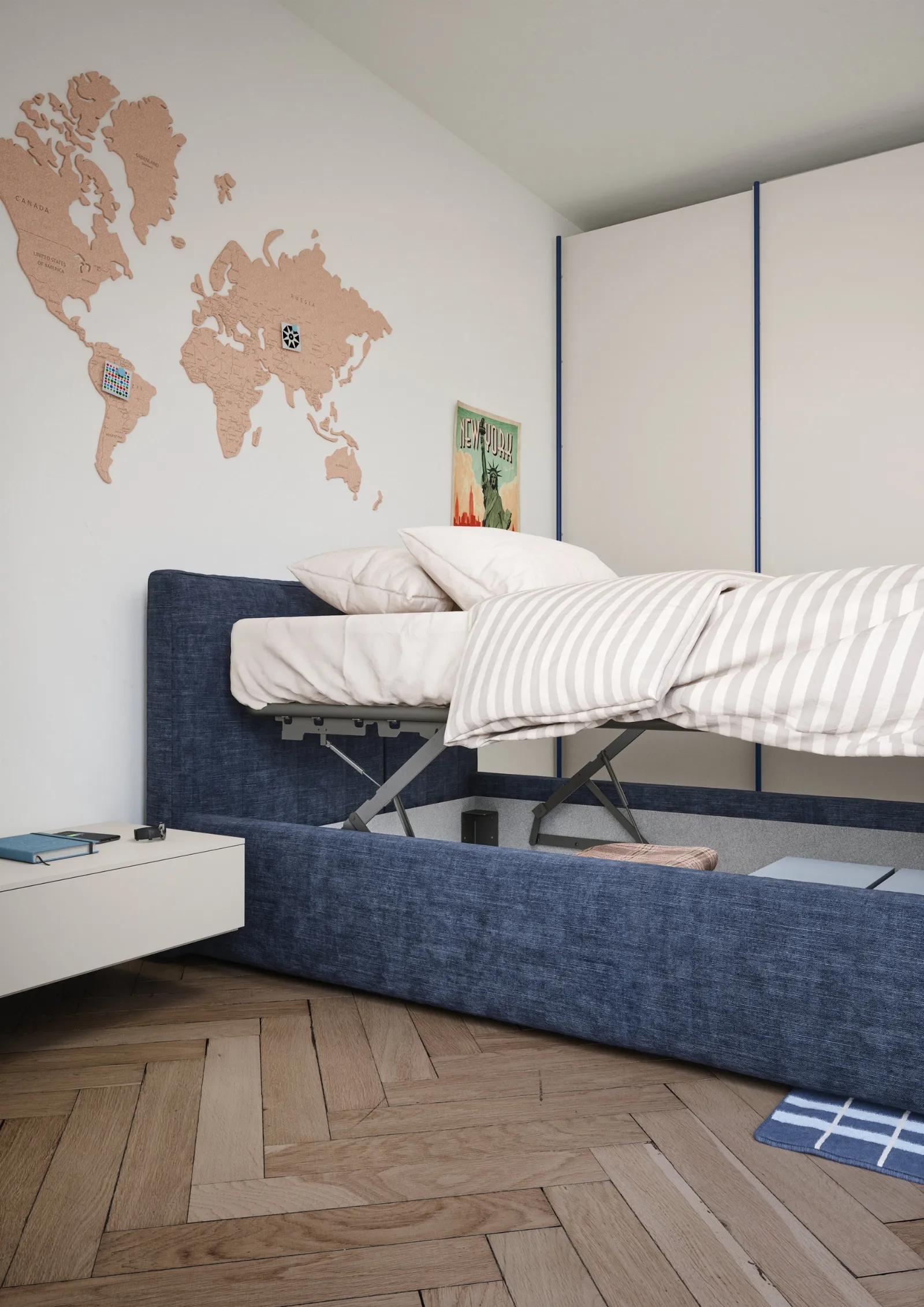 Se cerchi letti singoli con contenitore, eccoti il modello Swell in tessuto per impreziosire la camera dei più piccoli.