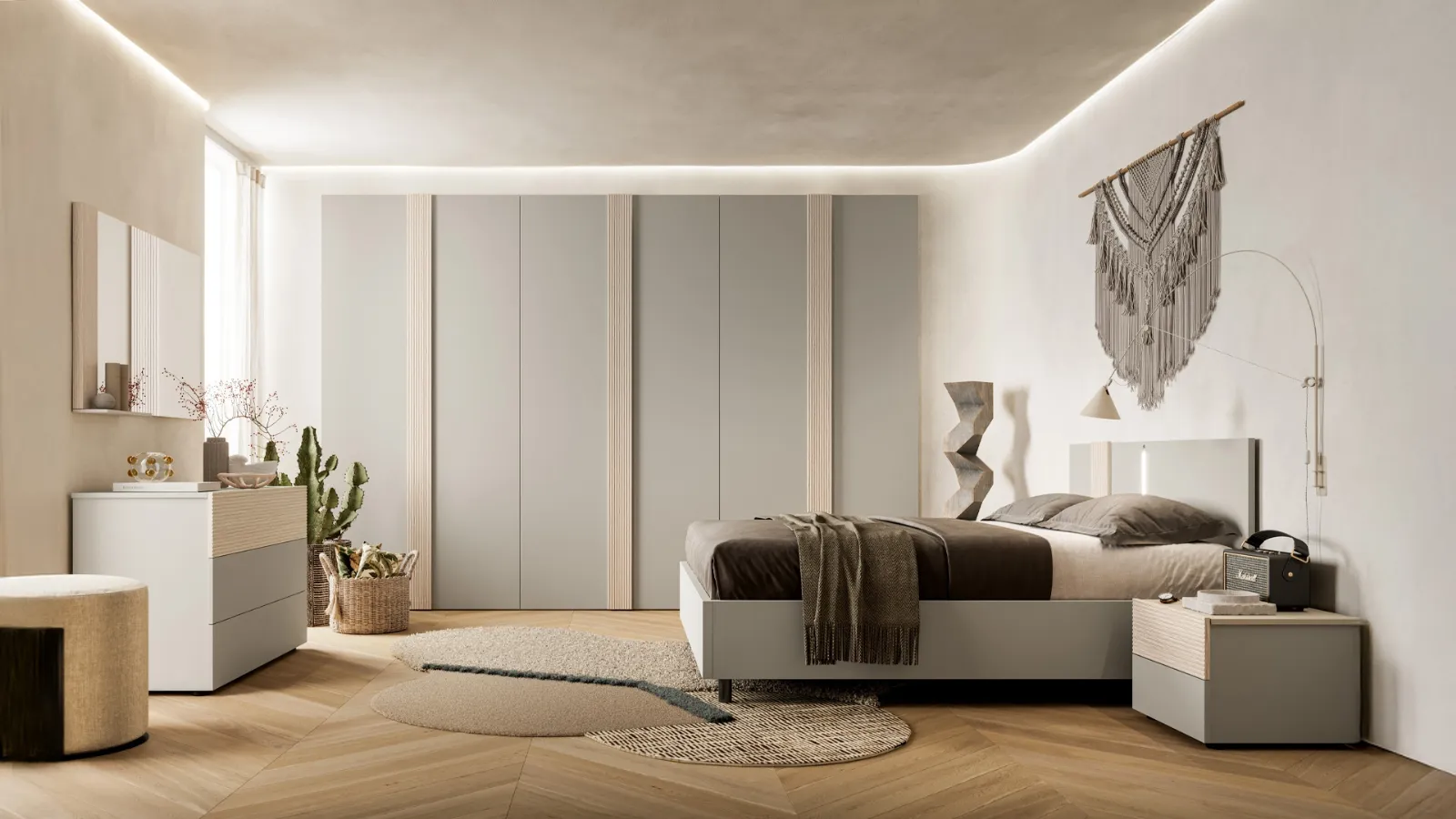 Vuoi organizzare la zona notte? Eccoti il letto in melaminico Abro di SantaLucia per spazi moderni.