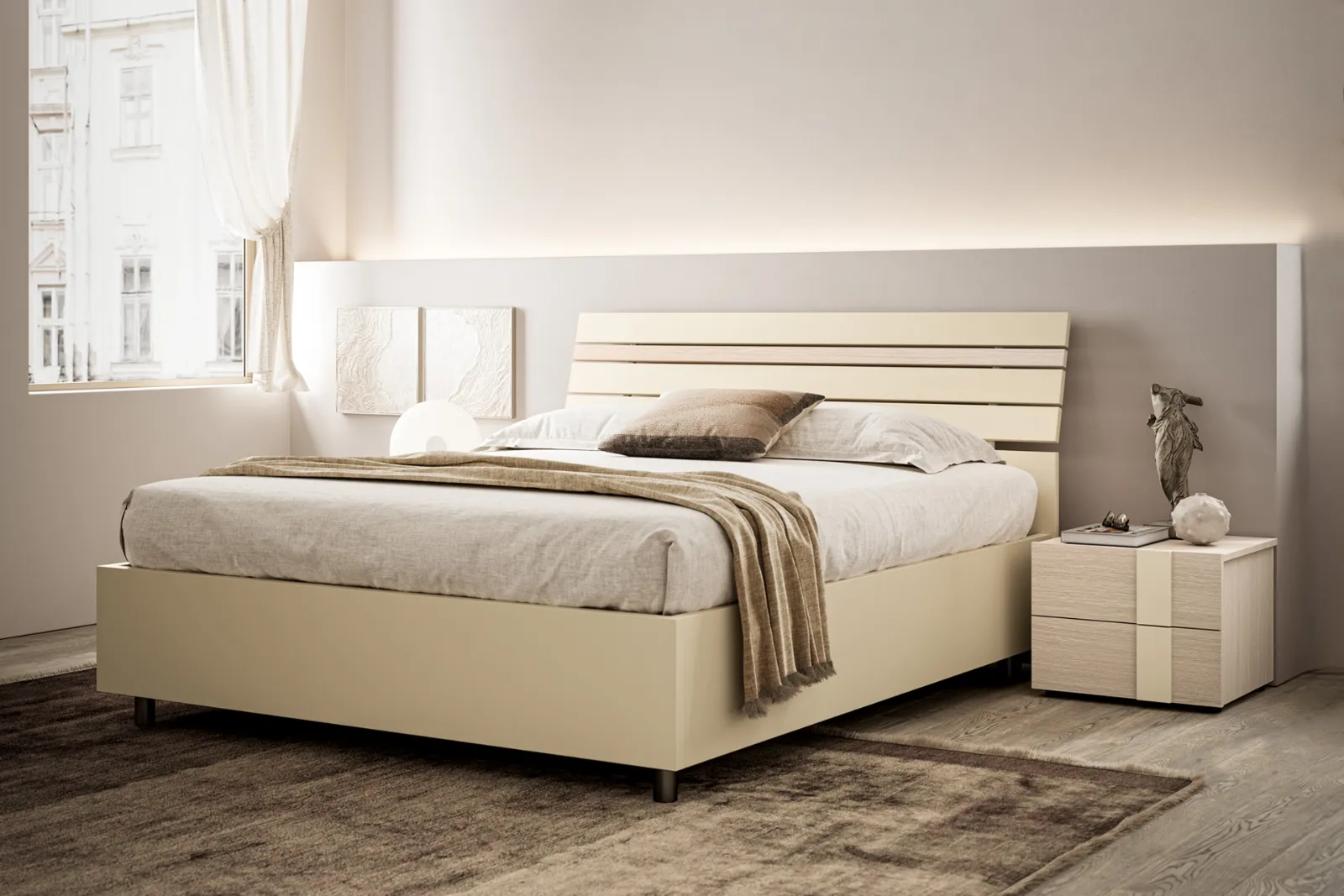 Durevolezza dei materiali e grande comfort sono gli ingredienti che distinguono tutti i prodotti della firma, tra cui anche il letto in melaminico nell'immagine. Scopri nel nostro showroom un ricco catalogo di Letti con testiera, mobili e oggetti accessori per la camera da letto dei migliori produttori. Se vuoi ammobiliare spazi moderni, ti aspettiamo per presentarti la nostra profilo di Arredamento Casa per realizzare il tuo progetto su misura. Se vuoi creare un'ambientazione intima e rasserenante, il modello visibile in foto fa per te: nella stanza del riposo dovrai creare un'ambientazione rasserenante, per farti rigenerare le energie psichiche e fisiche tutte le notti.