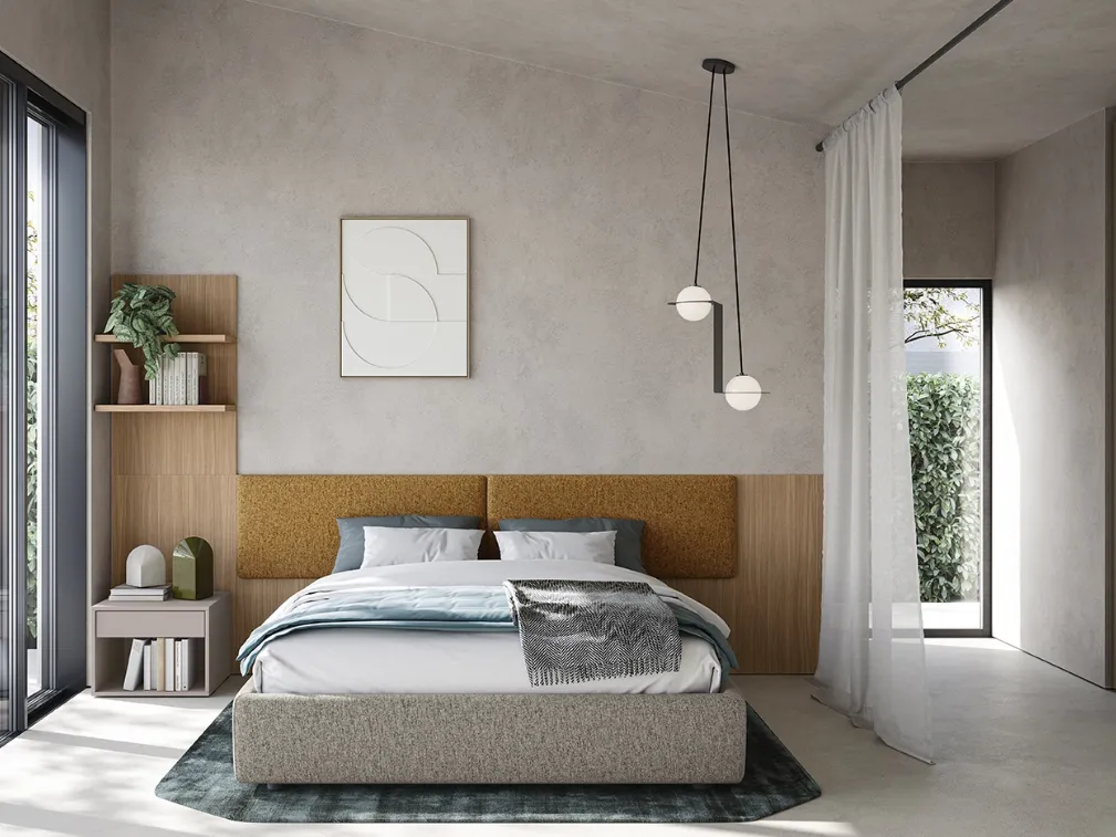 Il letto Darsena in tessuto, tra i modelli imbottiti matrimoniali moderni di Colombini Casa, è perfetto per assicurarti il sonno più profondo.