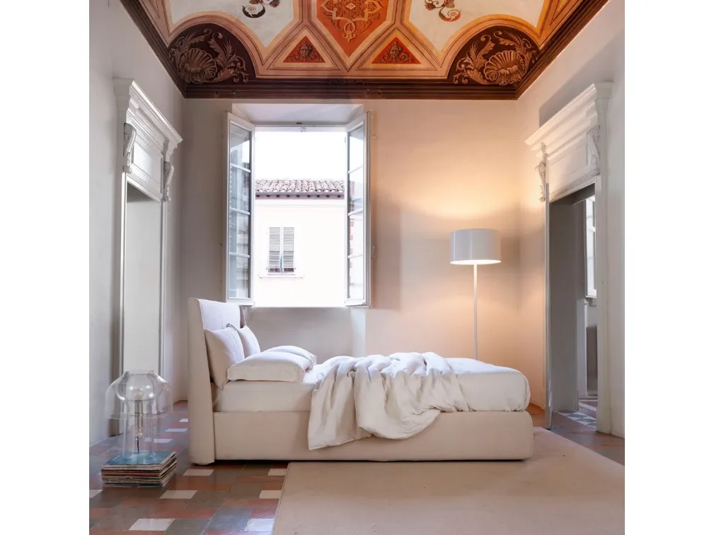Il letto Eddie in tessuto, tra i modelli imbottiti matrimoniali moderni di Noctis, è pensato per assicurarti il relax totale.