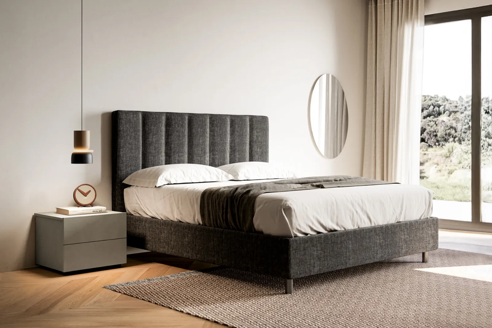 Il letto Kali in tessuto, tra i modelli imbottiti matrimoniali moderni di SantaLucia, è ideale per assicurarti il sonno più profondo.