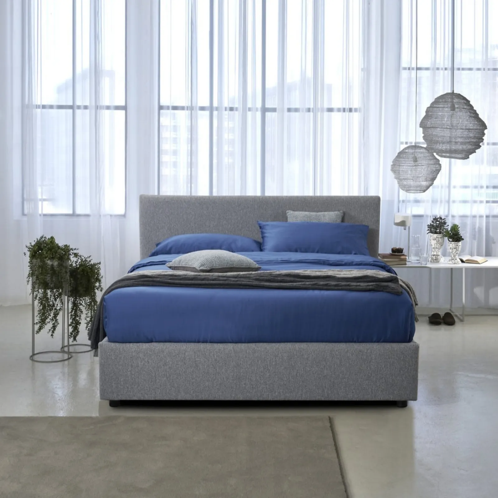 Il letto Sirio Start in tessuto, tra i modelli con contenitore matrimoniali moderni di Dorelan Letti, è ideale per assicurarti il relax totale.