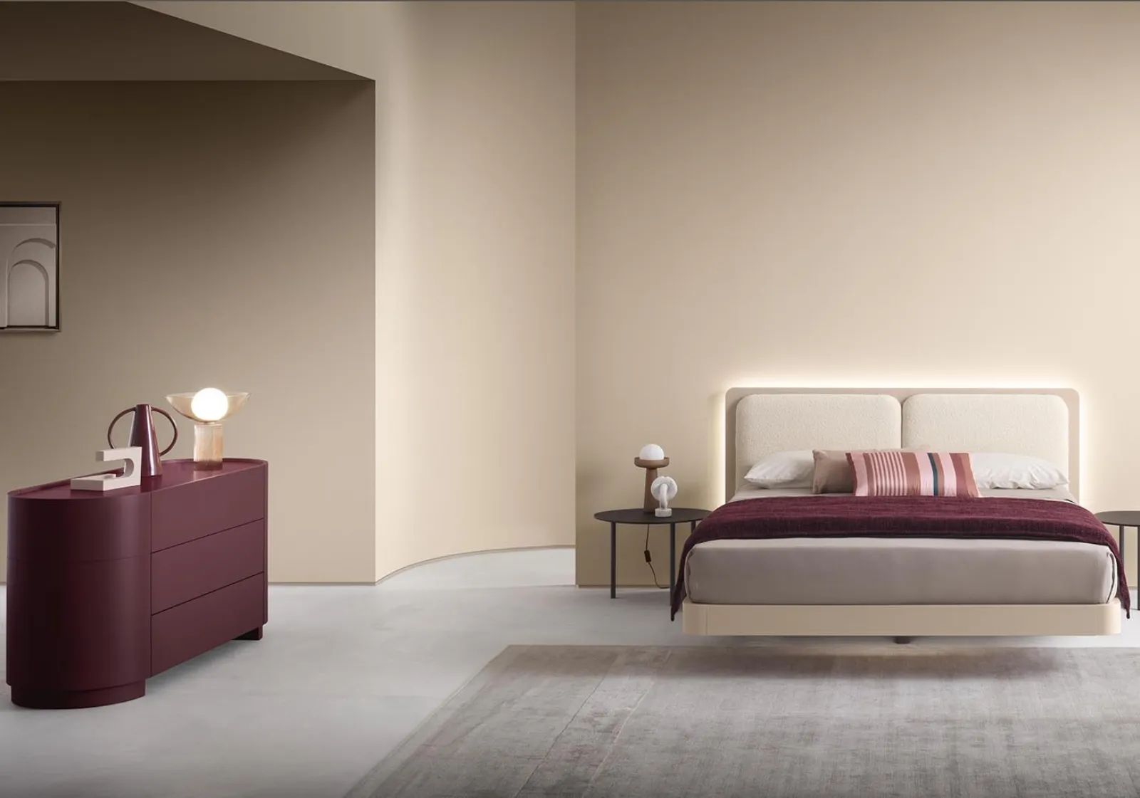 Il letto Voile in laccato opaco, tra i modelli con testiera matrimoniali moderni di Alf Da Frè, è pensato per assicurarti il riposo migliore.
