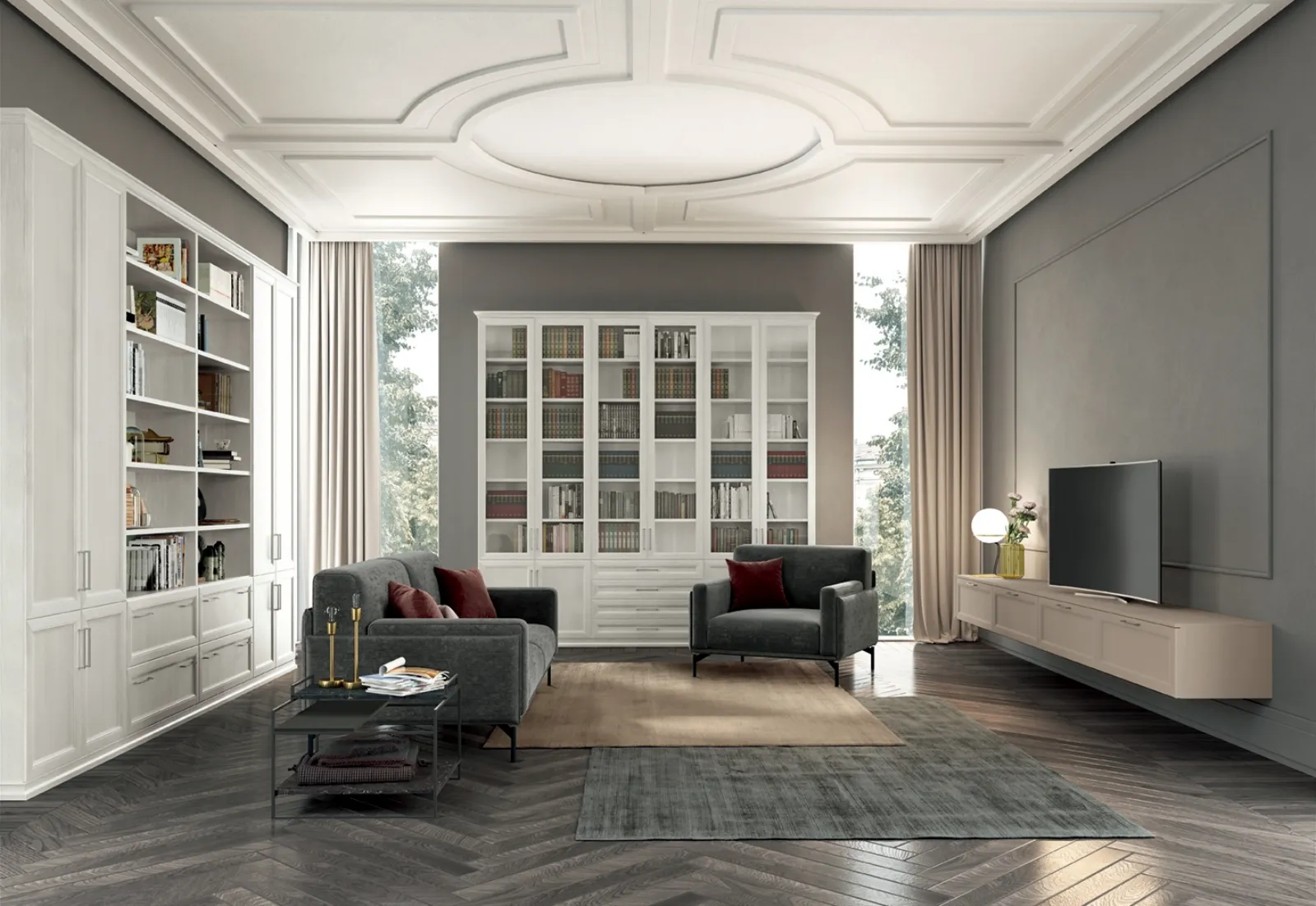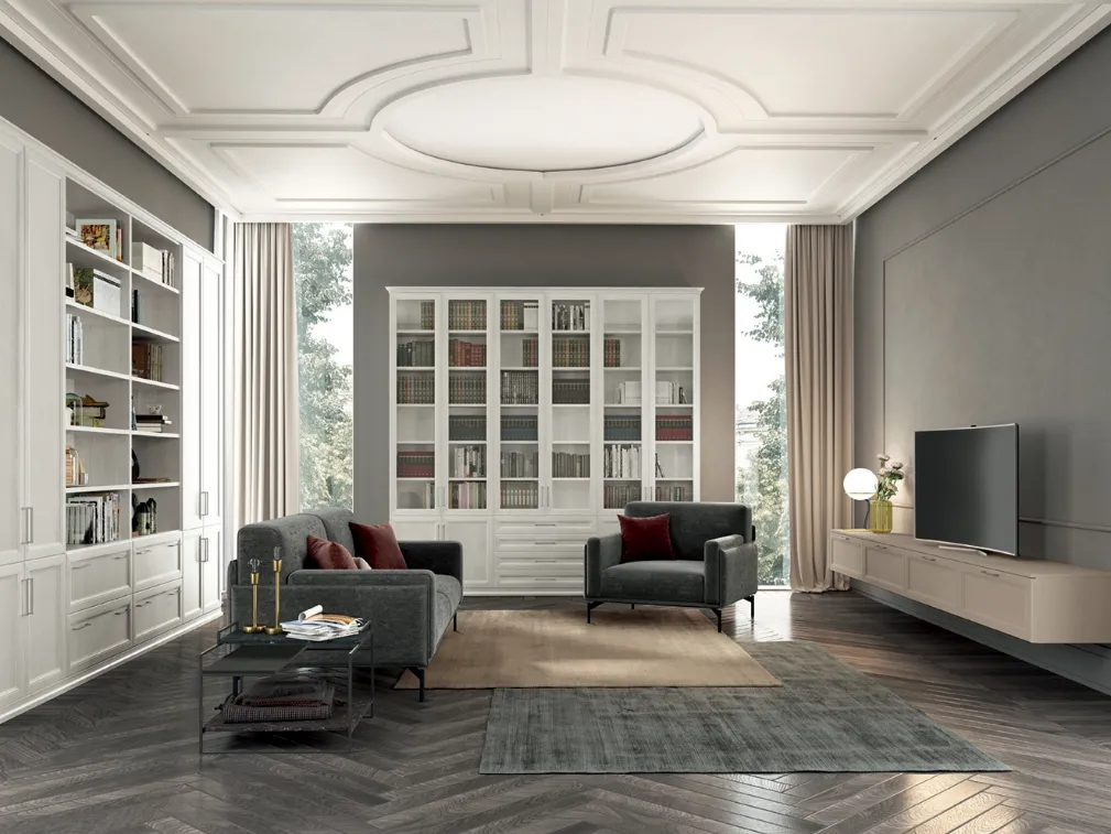 Se desideri librerie a muro per il soggiorno, clicca e scopri le nostre soluzioni classiche: il modello Arcadia AS006 Colombini Casa ti sta aspettando!