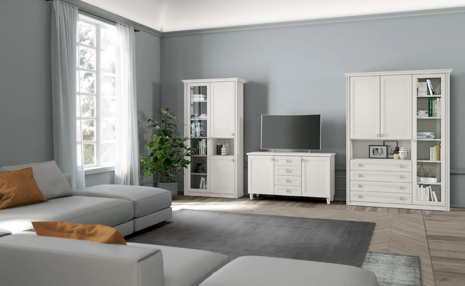 Materiali di pregio e forme decise: scopri la libreria Arcadia AS016 di Colombini Casa tra le più originali Librerie classiche a muro.
