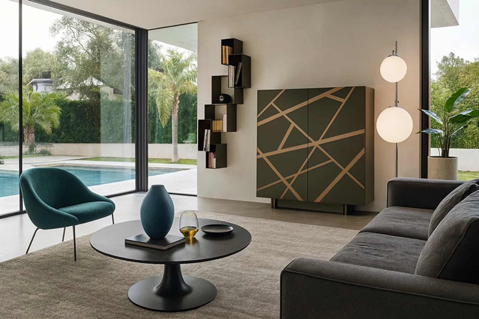 Clicca e ottieni informazioni! Mobile soggiorno Bassorilievo 35 Bronzo Graffiato 120x130 di Voltan in laccato opaco: ti sta aspettando per completare le tue stanze moderne.