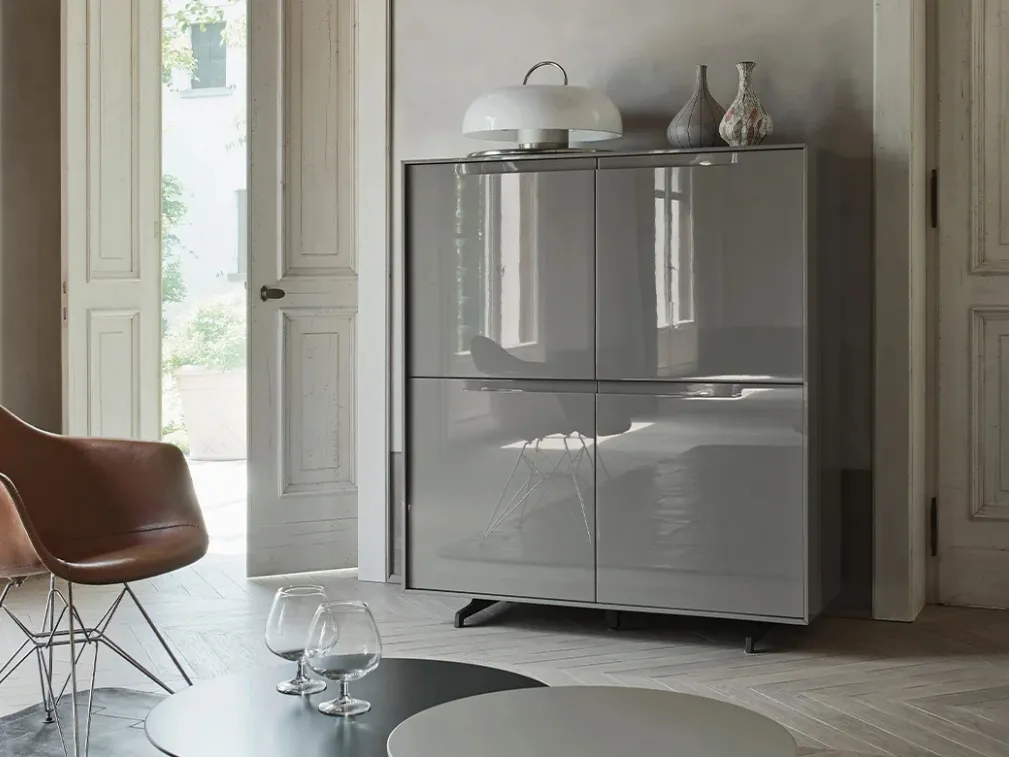 La Madia Vela 03 di Sangiacomo qui disponibile con finitura in laccato lucido è la soluzione ottimale, poiché regala un tocco ricercato al salotto. Ottimizza il tuo soggiorno seguendo le tue problematiche abitative: scopri in negozio una ricca gamma di mobili soggiorno, anche in laccato lucido come il modello mostrato in foto. Per gli appassionati nel campo dell'arredo questo modello di madia dalle linee moderne garatisce l'eccellenza del noto e conosciuto brand: contattaci per info e preventivi.