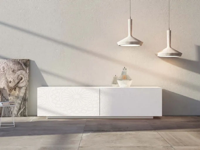 Arreda un soggiorno operativo e pratico con questa madia Incisione 29 Bianco di Voltan: scopri le più esclusive Madie in laccato opaco.