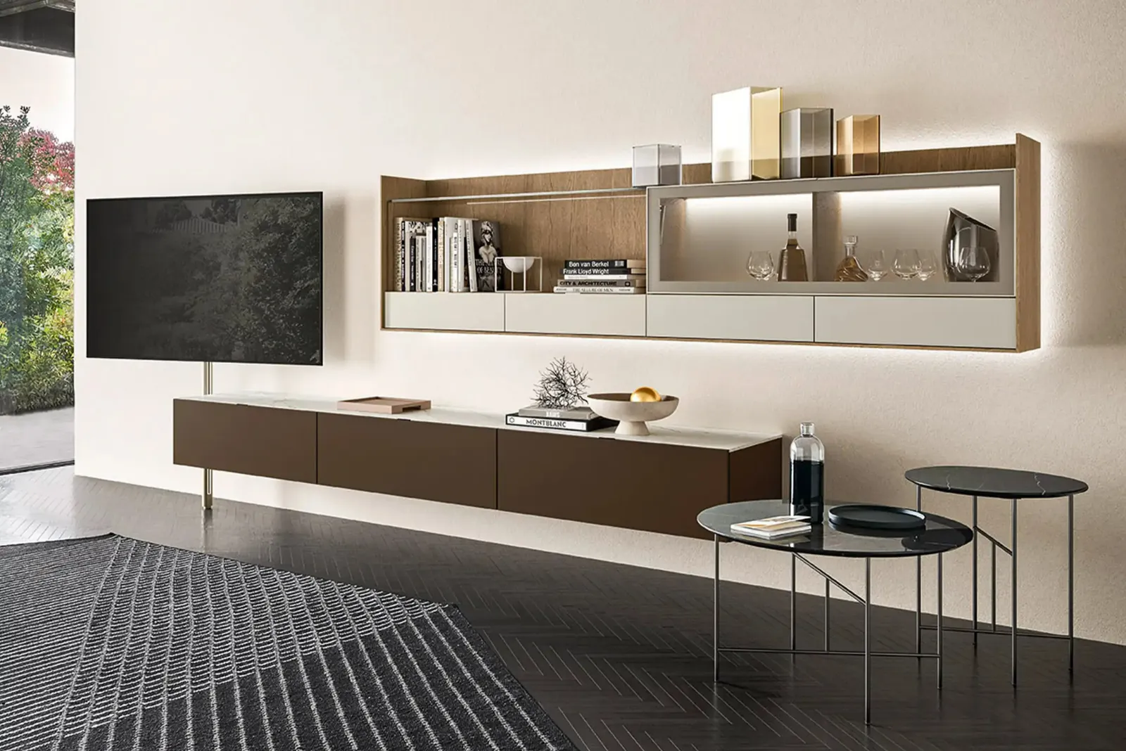 Se desideri ammobiliare soggiorni moderni, entra e scopri il mobile porta tv Tv Video Laccato del brand Sangiacomo, fatto in laccato opaco