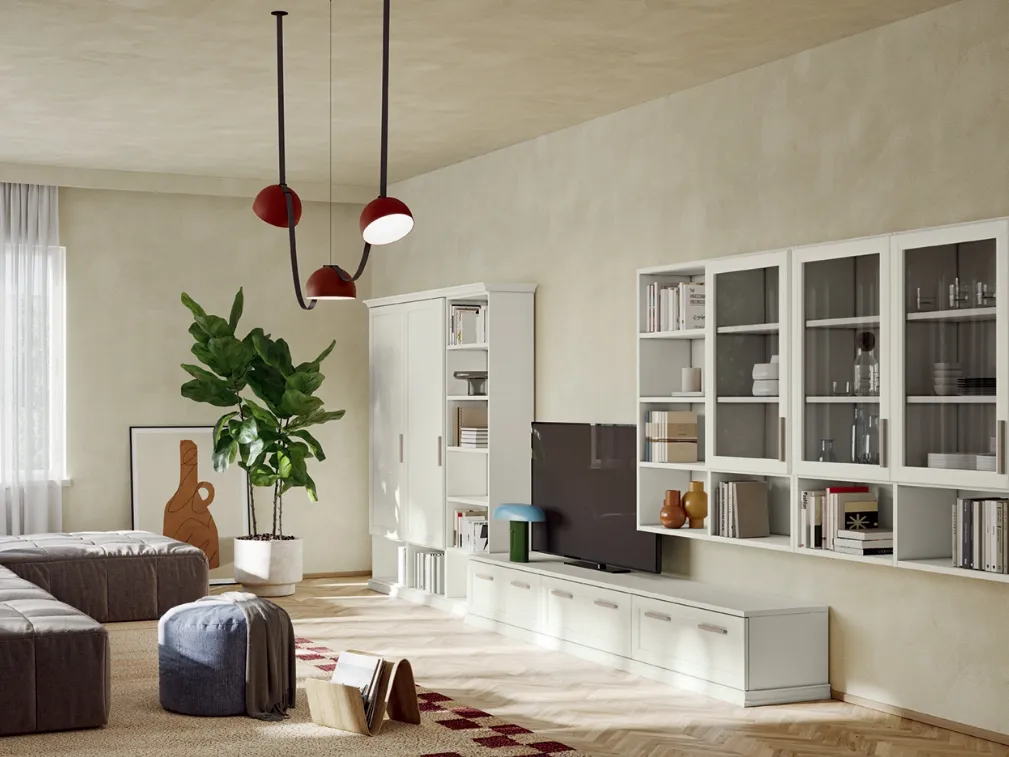 Clicca e scopri di più sulla parete attrezzata Arcadia AS003 del brand Colombini Casa: è la soluzione dalle linee classiche ideale per te.
