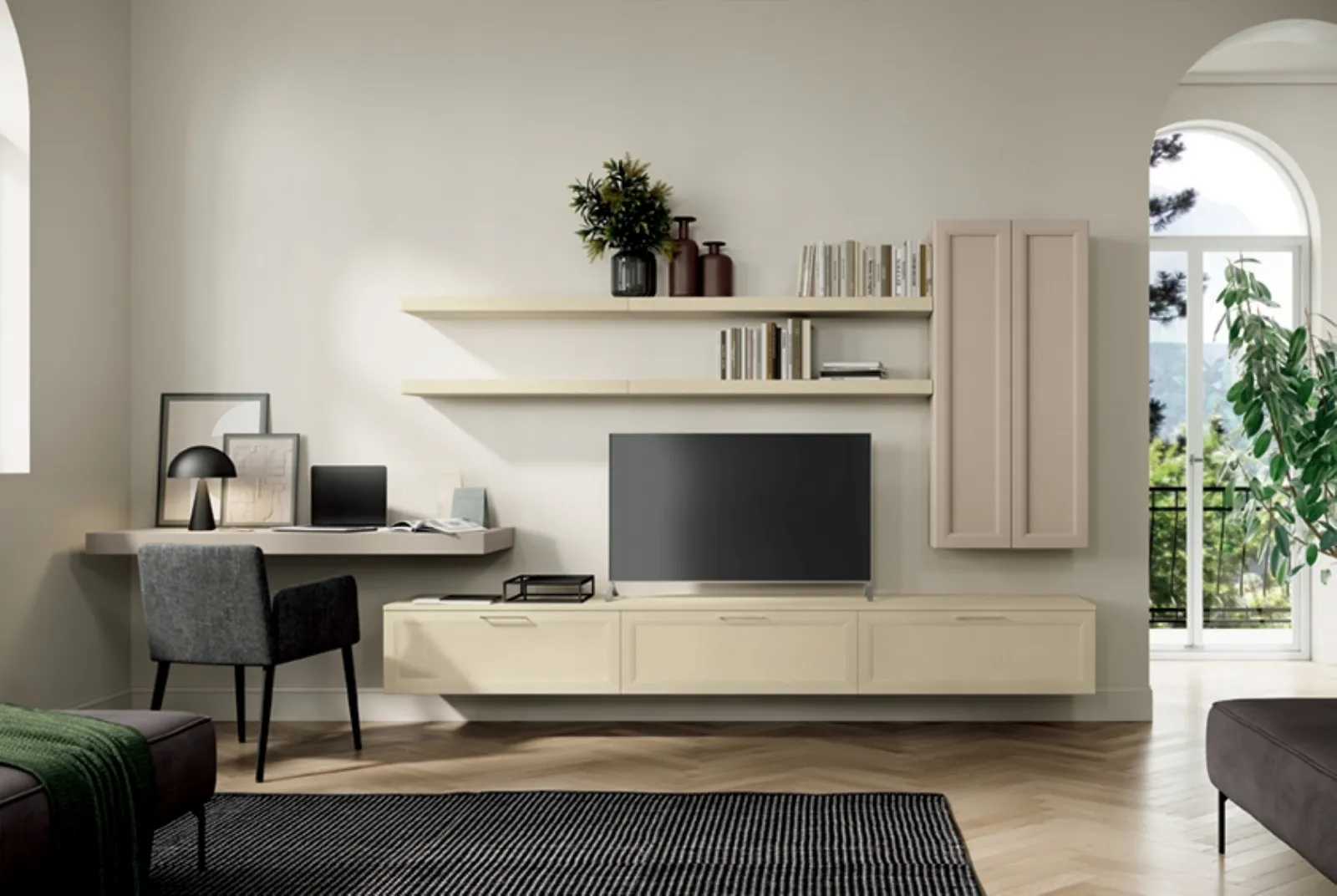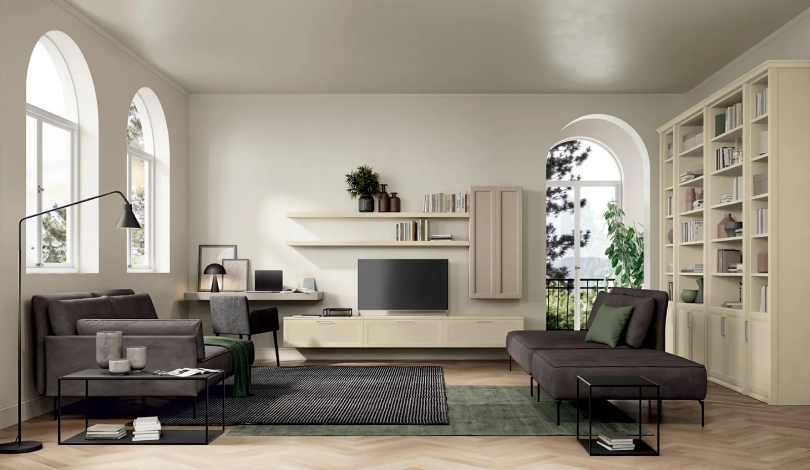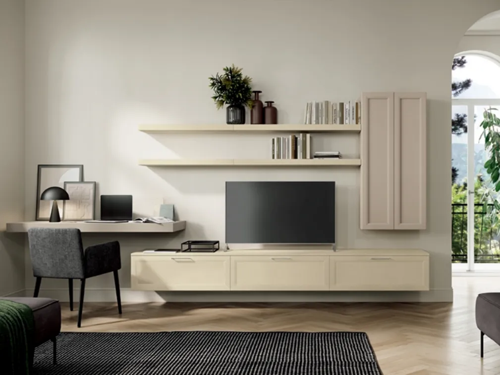 Vuoi allestire un soggiorno operativo e pratico? Ecco a te la parete attrezzata Arcadia AS004 Colombini Casa dalle linee decise classiche.