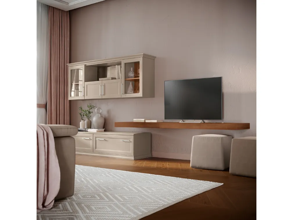Le Pareti Attrezzate hanno conquistato un posto importante nella zona giorno delle nostre case: sono mobili plurifunzionali e salvaspazio sempre realizzabili su misura. Attraverso un gioco dinamico di accostamenti fra componenti a giorno o vani chiusi, le Pareti Attrezzate classiche arredano il living usufruendo al meglio di ogni spazio. Questa parete attrezzata è una delle soluzioni dell'azienda e ti permetterà di arredare la zona giorno seguendo le più personali problematiche abitative.
