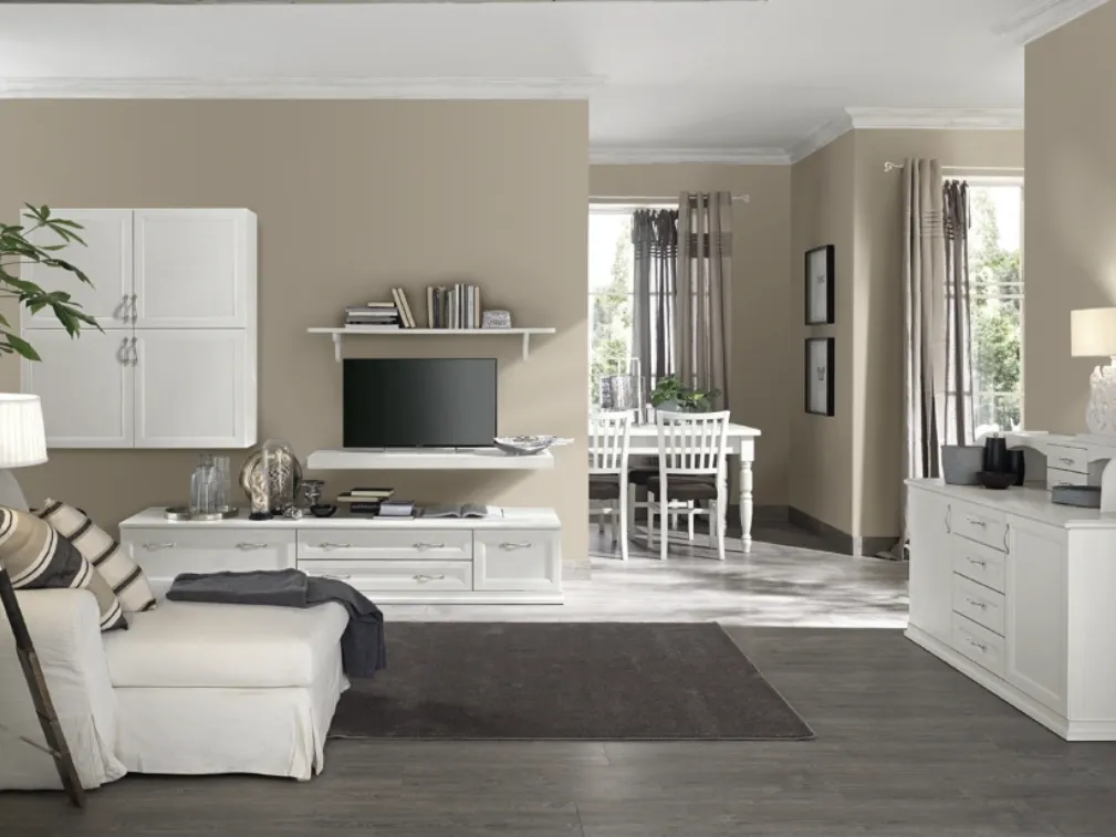 Se vuoi completare un soggiorno pratico e dinamico dalle linee classiche, ti offriamo la parete attrezzata Arcadia AS021 Colombini Casa.