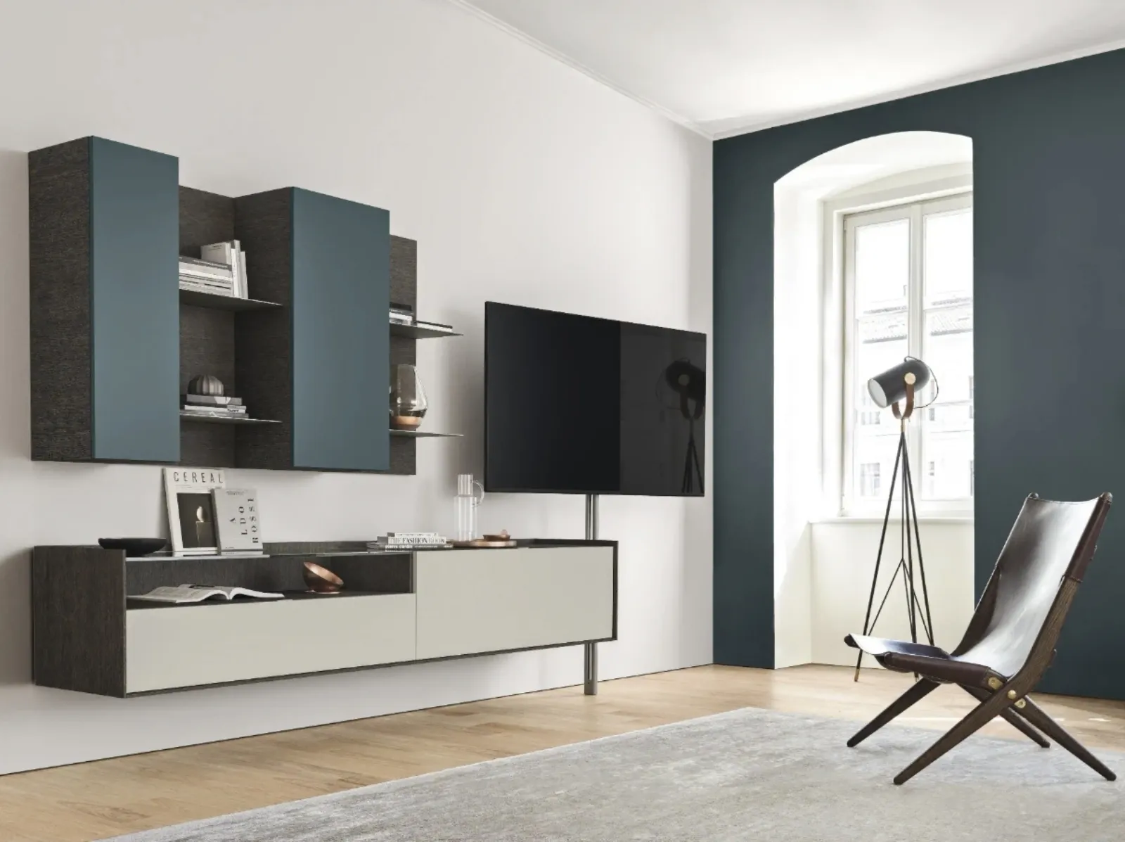 La Parete Attrezzata sospesa Cabaret Glass 02 di Sangiacomo nella fotografia è una tra le più esclusive soluzioni d’arredo sul mercato: massima componibilità e le varie opportunità di progettazione la rendono bella e funzionale. Lasciati ispirare da una ricca gamma di arredi per la zona giorno e troverai la parete attrezzata che fa al caso tuo. Sangiacomo produce originali modelli di mobili soggiorno, diversi per stile e conformazioni, texture e accessori: scopri nel nostro showroom l'Arredamento Casa dei migliori brand. I mobili soggiorno in laccato opaco dalle linee moderne come il modello nella fotografia sono veramente versatili e capaci di ammobiliare il living usufruendo al meglio di ogni angolo.