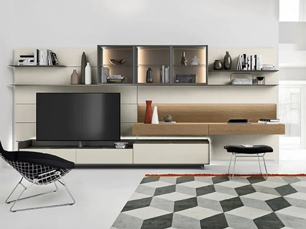Vuoi progettare un living dinamico e operativo? Ti offriamo la parete attrezzata Cabaret Step Sangiacomo dalle forme decise moderne.
