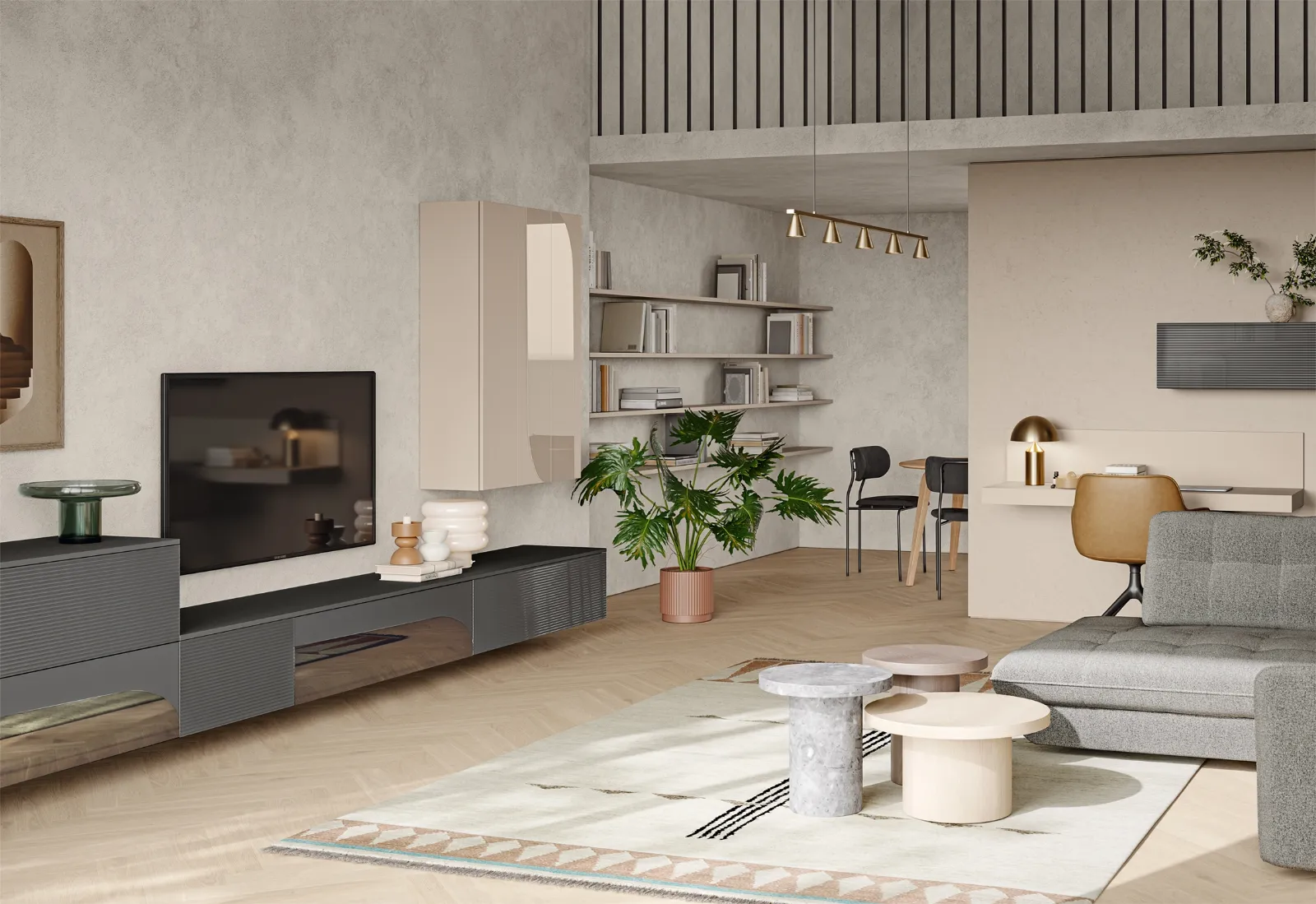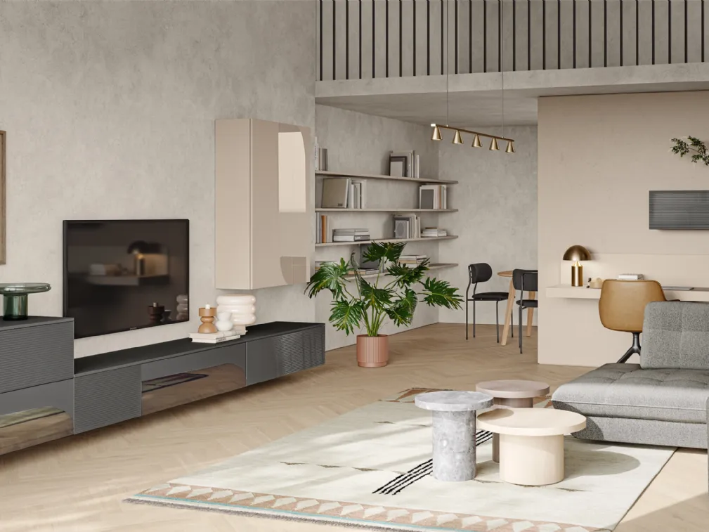 Clicca e scopri di più sulla parete attrezzata Eclettica EG001 della firma Colombini Casa: è la soluzione dalle linee moderne perfetta per te.