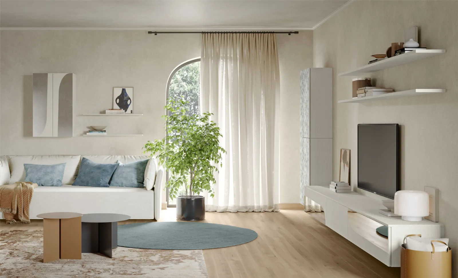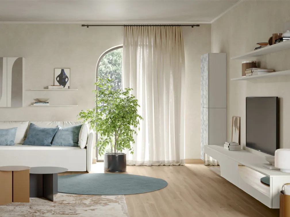 Vuoi arredare un soggiorno operativo e pratico? Ti presentiamo la parete attrezzata Eclettica EG004 Colombini Casa dalle forme decise moderne.