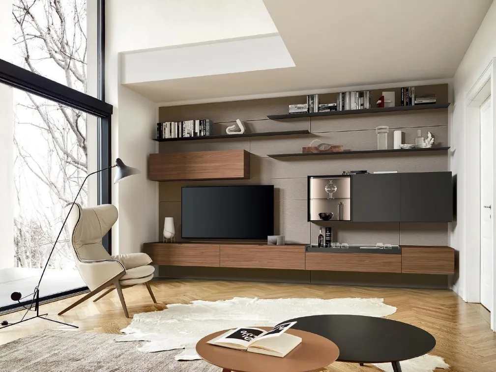 Se desideri ultimare un living operativo e pratico dalle linee moderne, ecco a te la parete attrezzata Lampo 186 Sangiacomo.