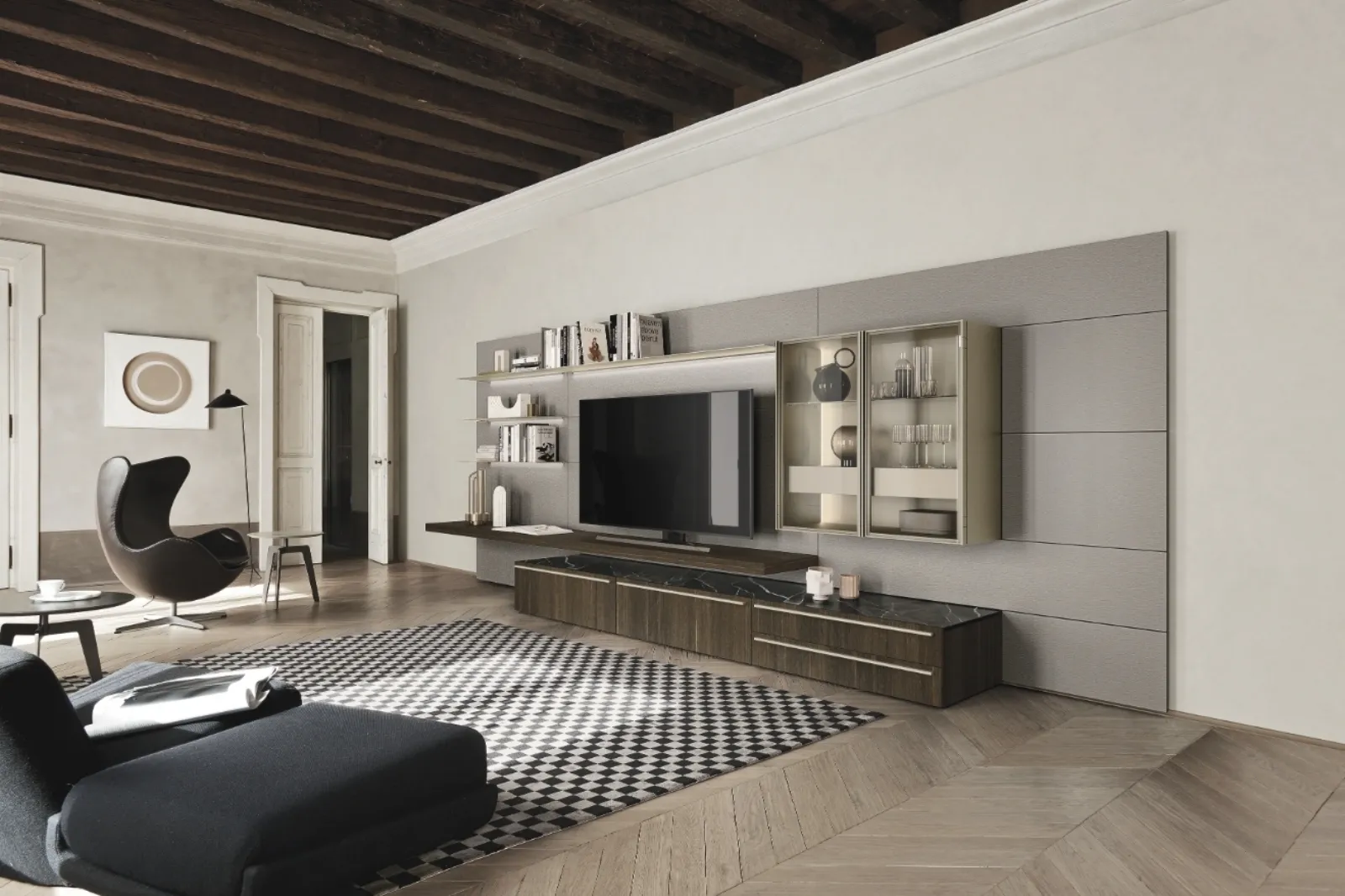 Clicca e scopri di più sulla parete attrezzata Lampo 198 dell'azienda Sangiacomo: è la soluzione dalle linee moderne perfetta per te.